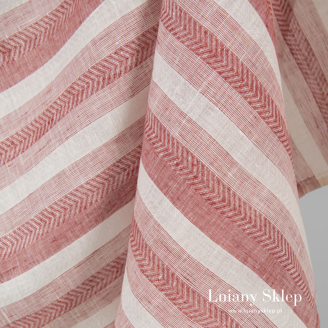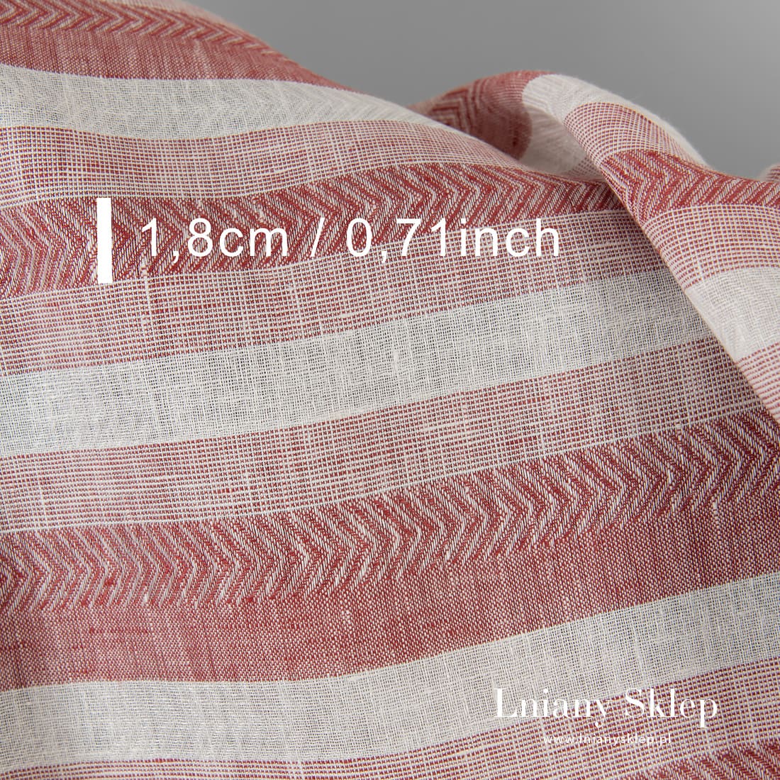 - Wzór: biegnące pionowo paski wytkane na przemian splotem płóciennym i jodełkowym