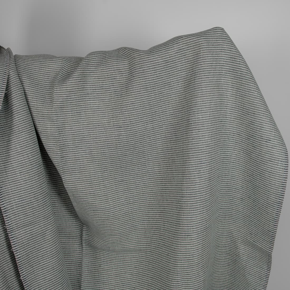 • Tkanina lniana w drobny zielono-szary rzucik