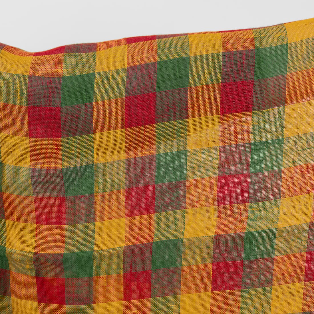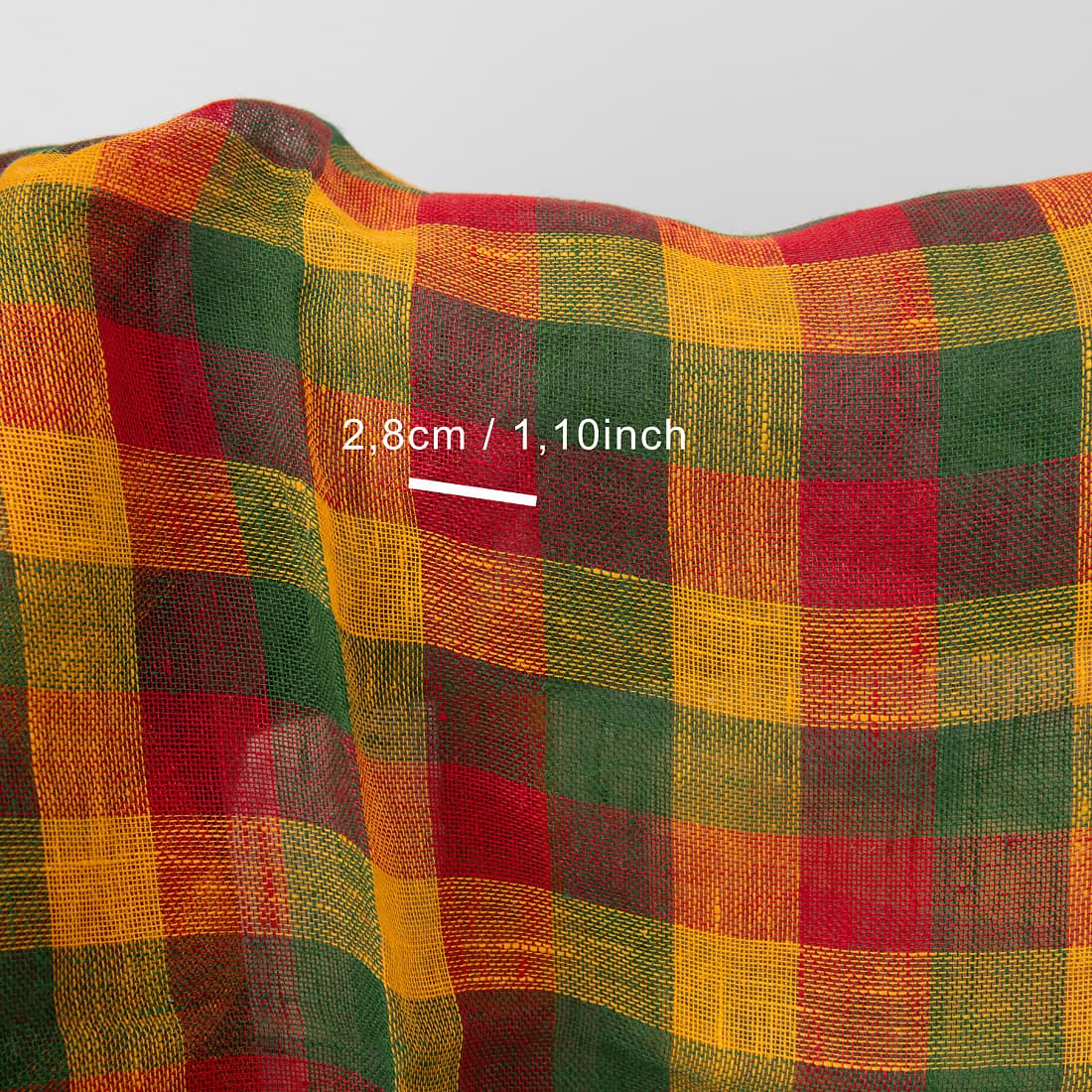 • Jaskrawa tkanina lniana w intensywną czerwono - zielono - żółtą kratkę