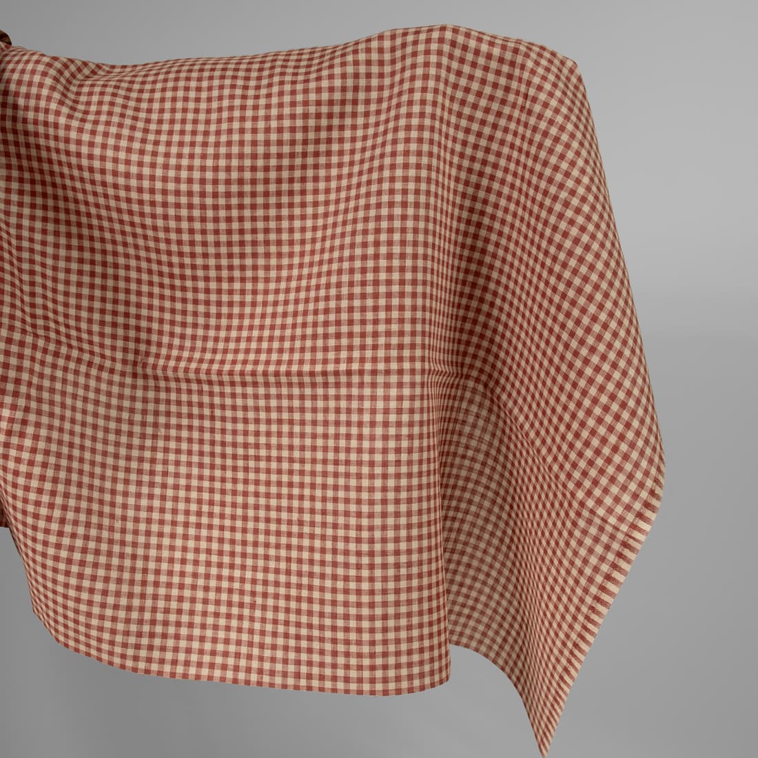 • Tkanina lniana w kratkę piaskową i czerwoną