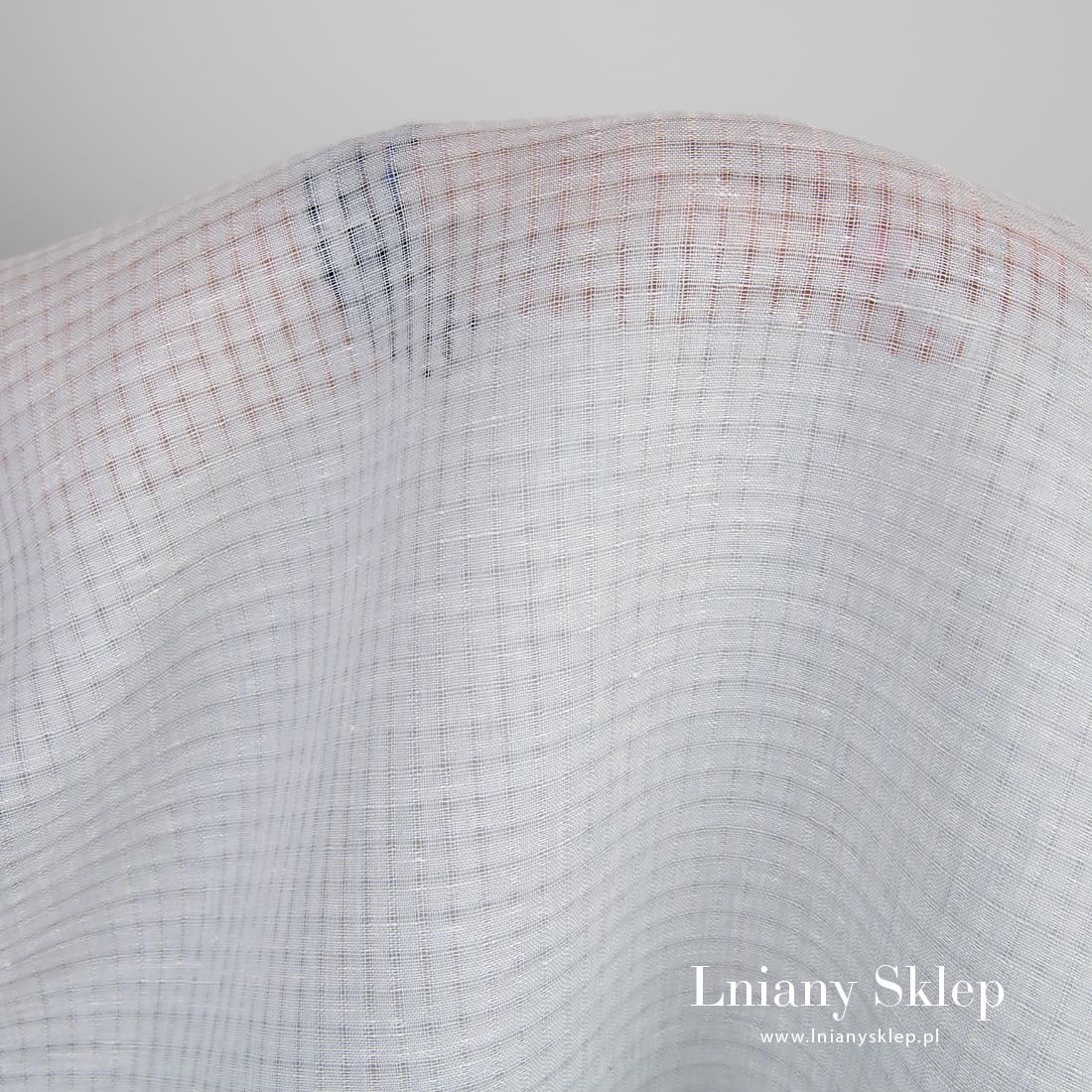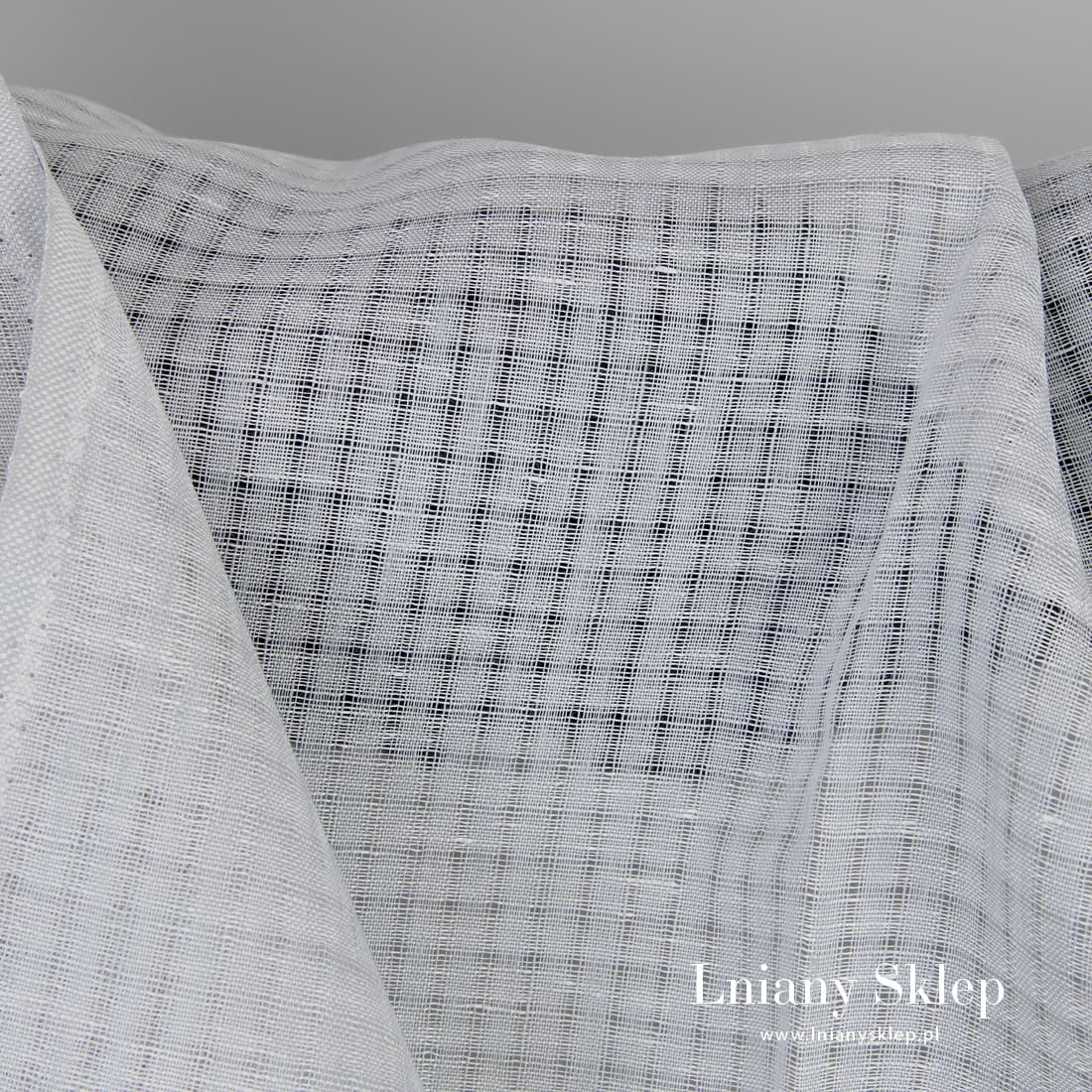 • Tkanina lniana w niebieskawe prześwitujące okienka.