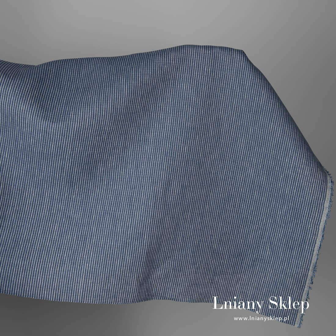 • Len w granatowo-białe cieniutkie pionowe paski.