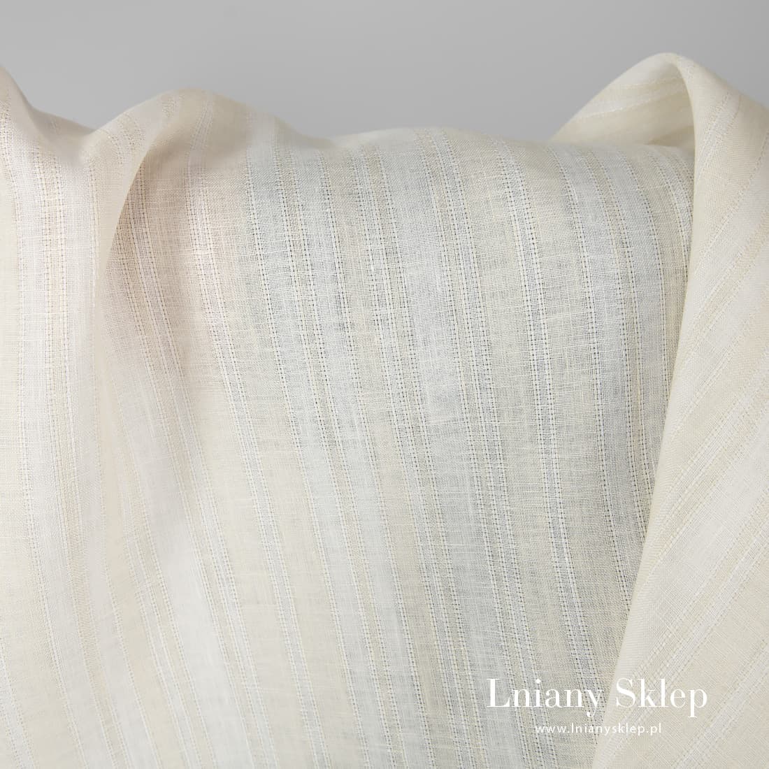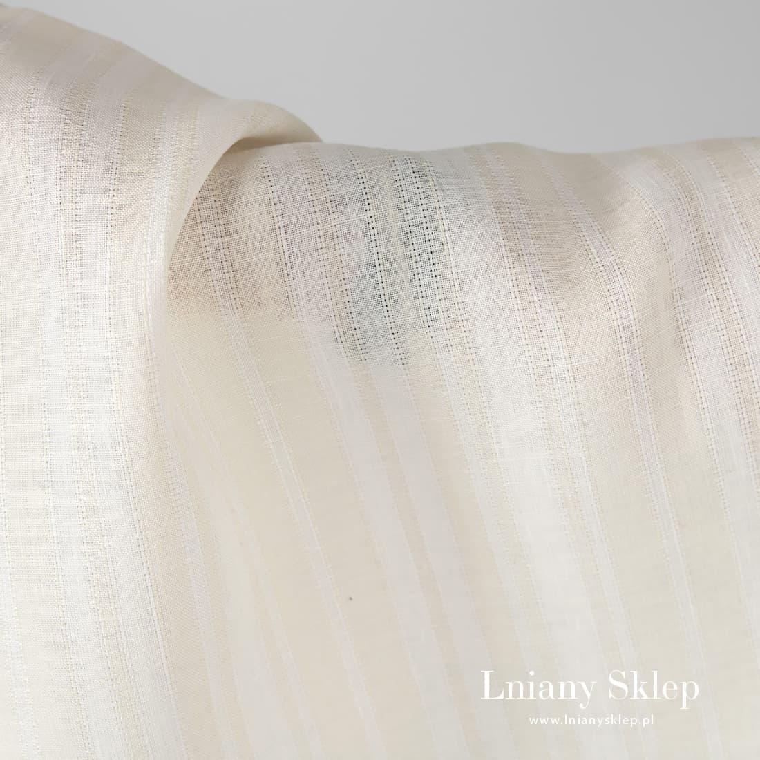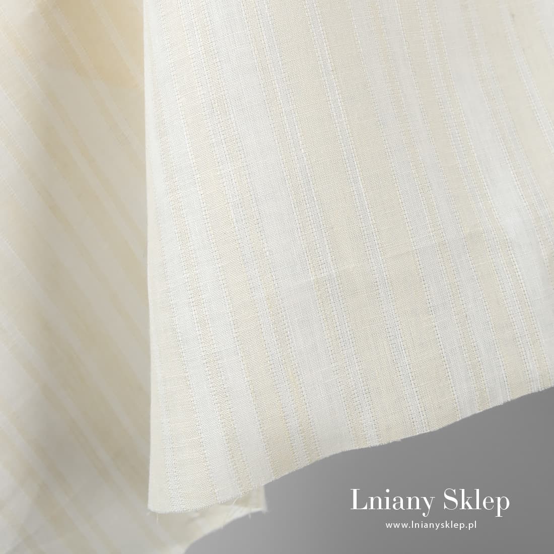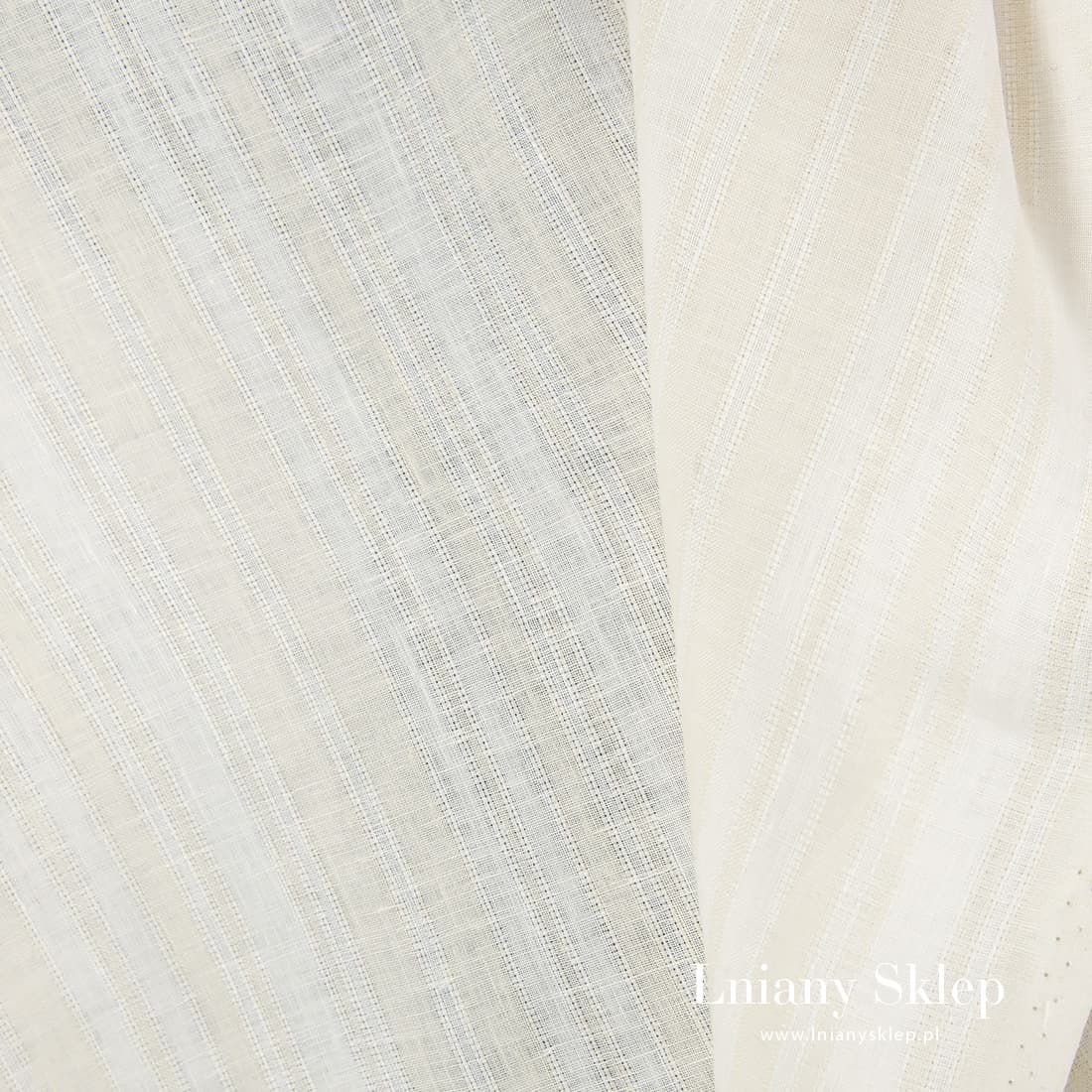 Tkanina lniana w paski jasne i ażurowe wytkane z przędzy białej i żółtej, a biegnące pionowo. Lekki, gęsty, średnio ciężki len na szycie odzieży, obrusów, serwetek, zasłon i in.