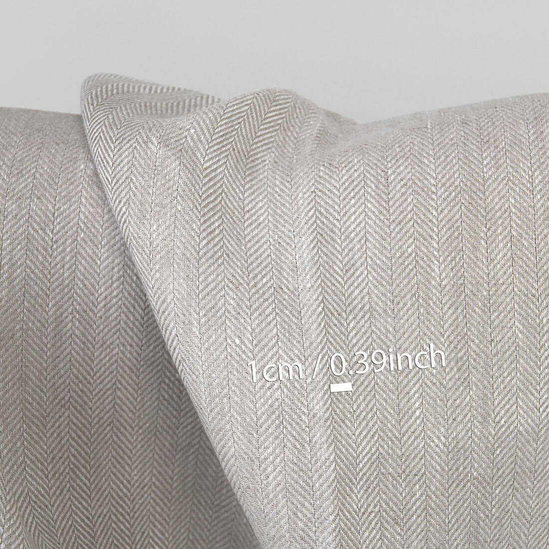 Gęsto tkana, średnio ciężka tkanina lniana. Użyte do produkcji tej tkaniny białe i szare nici lniane układają się w delikatny, biegnący wzdłuż tkaniny, jodełkowy wzór.