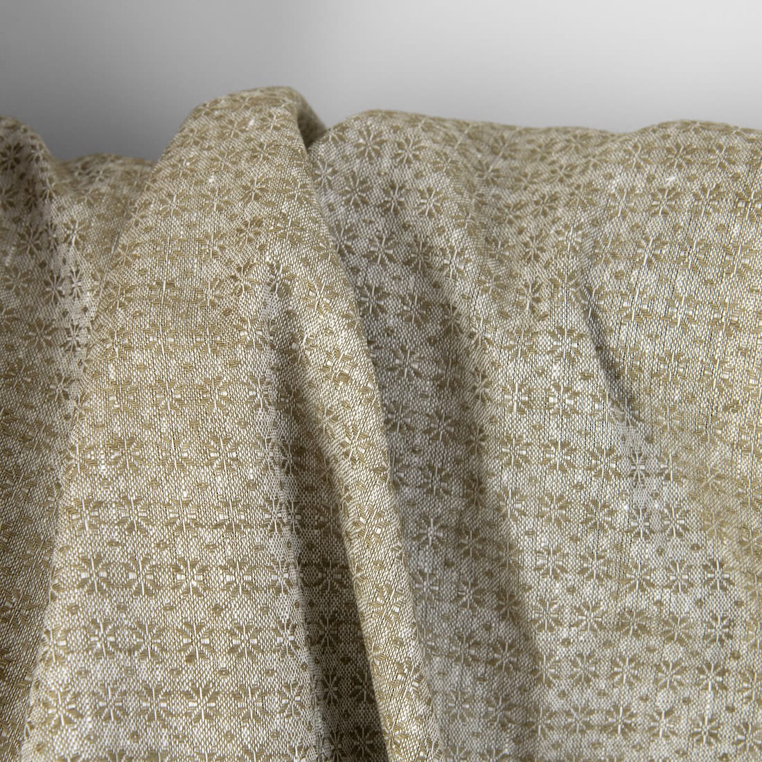 • Szaro - zielony len w kwiatki