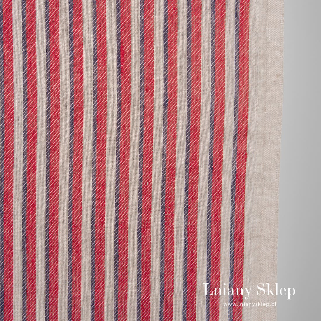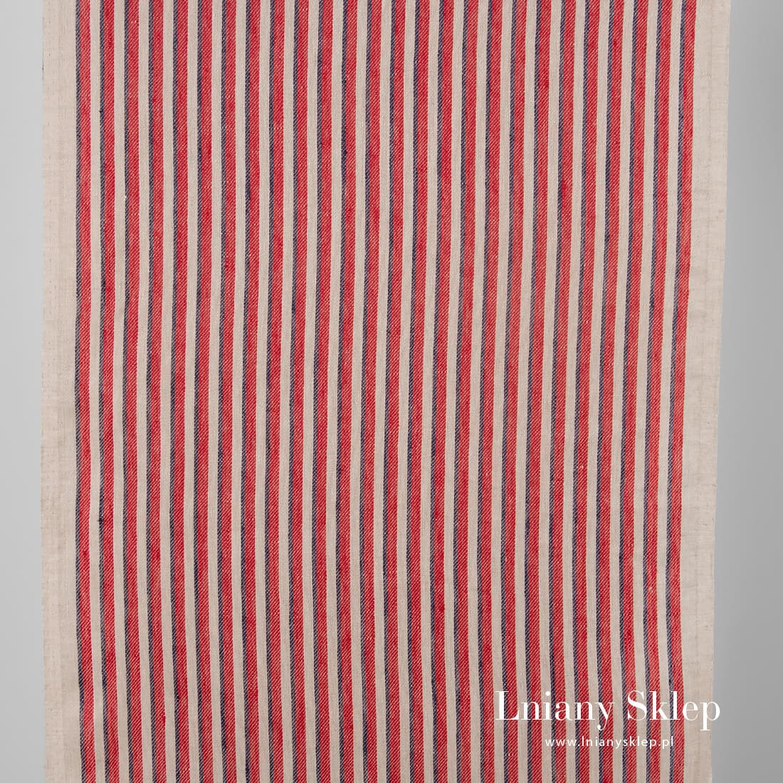 • Tkanina ścierkowa w piaskowe i czerwone paski.