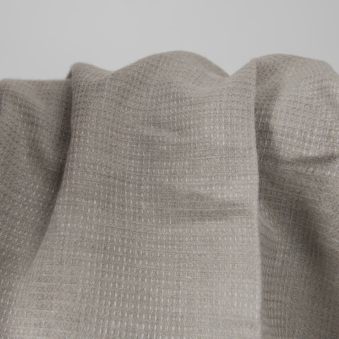 Tkanina lniana wytkana w drobną, lekko wypukłą krateczkę z przędzy o barwie naturalnego lnu. Wybrany wzór przypomina wzór waflowy, który staje się wyraźniejszy po praniu. Oryginalny wzór i naturalna barwa – dla miłośników natury. Tkanina świetnie wchłania wodę.