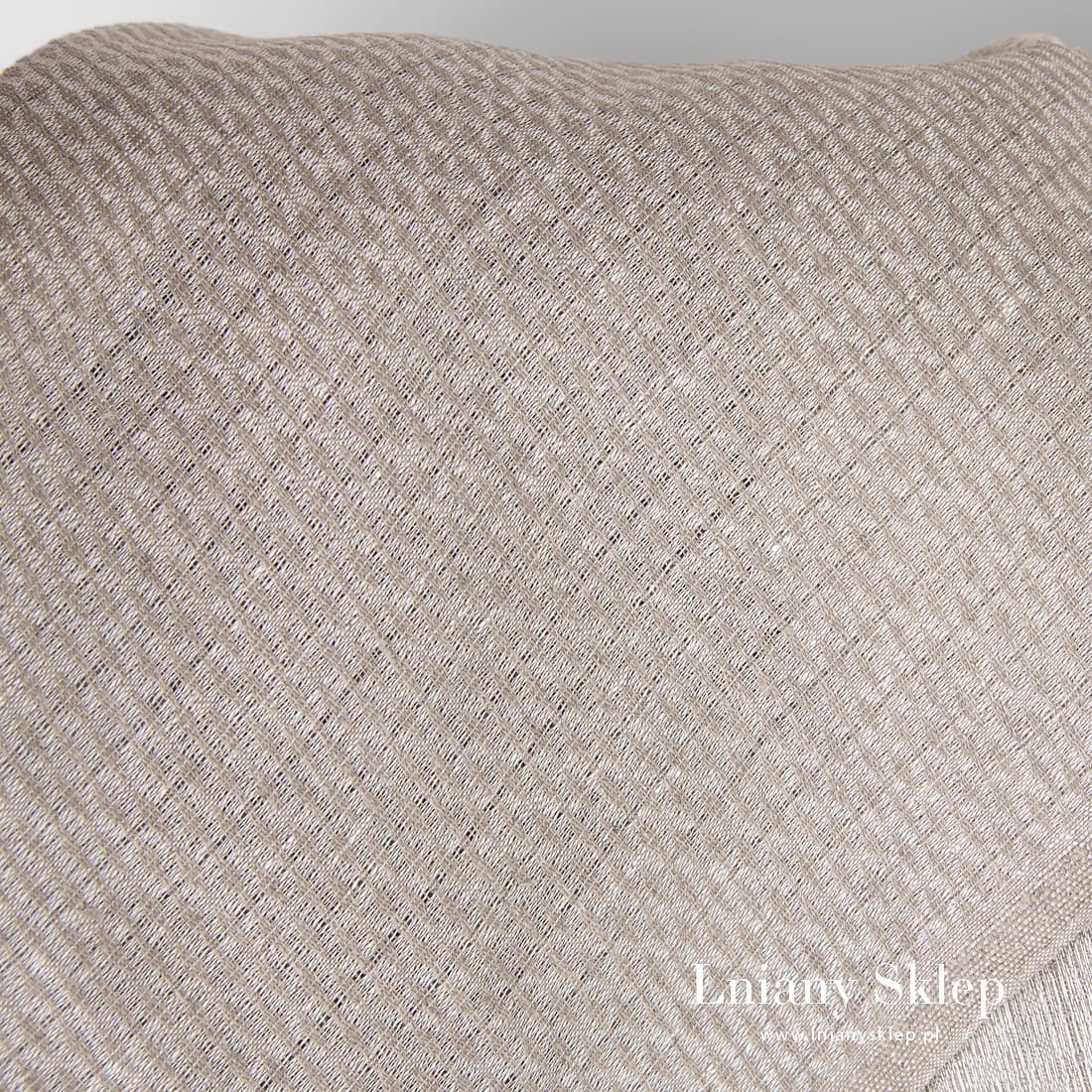 - Kolor: tkanina wytkana z białej i niebarwionej przędzy lnianej (piaskowa o szarym odcieniu)