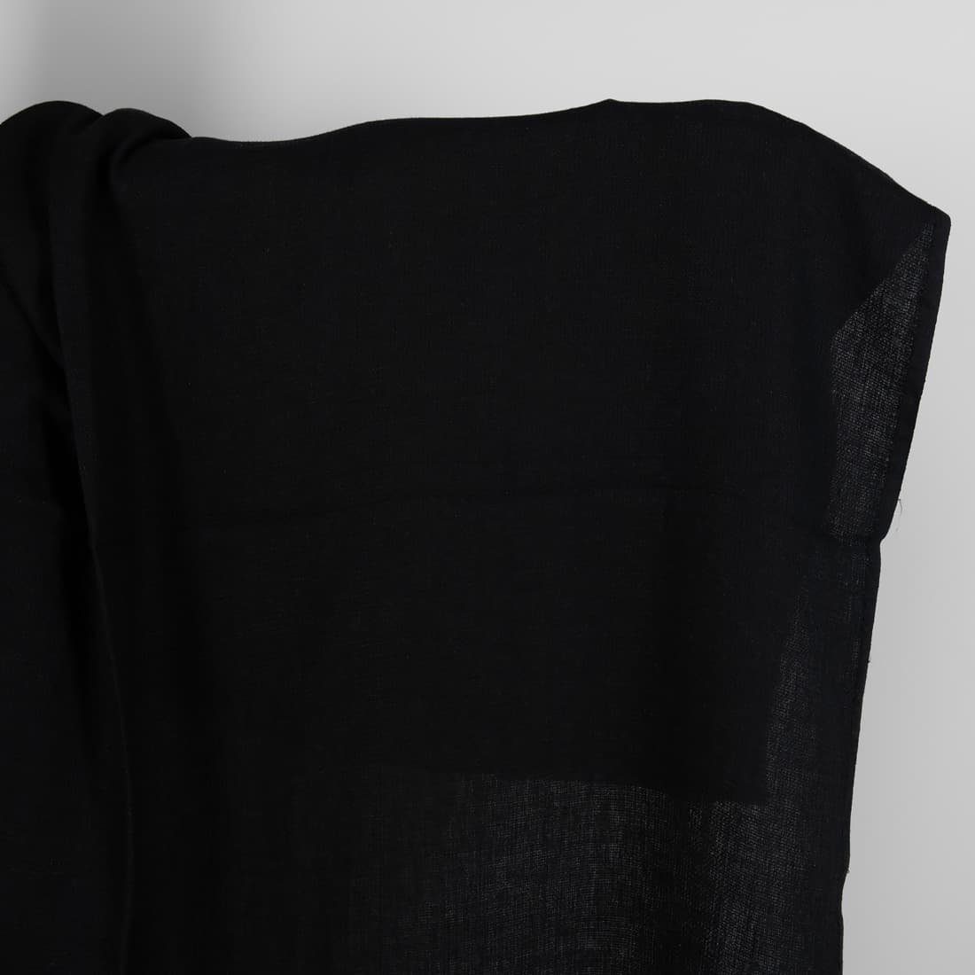 Czarna, prana, a dlatego miękka i przytulna, tkanina lniana wytkana we wzór waflowy. Jakościowa, lekka, gęsta i wytrzymała tkanina lniana odpowiednia na szycie ręczników i szlafroków, a także najróżniejszych akcesoriów.