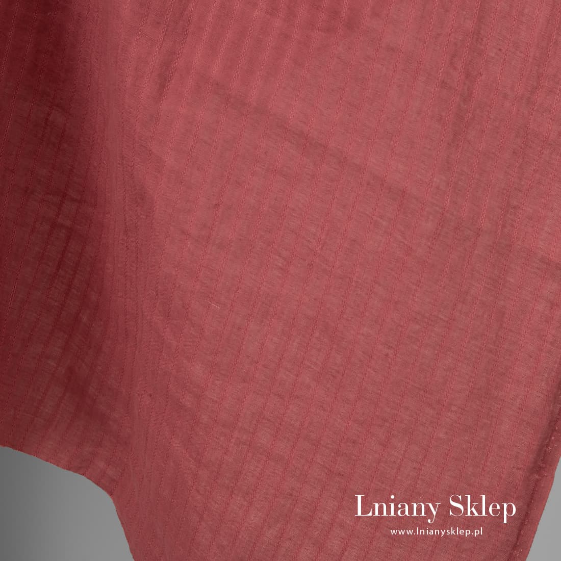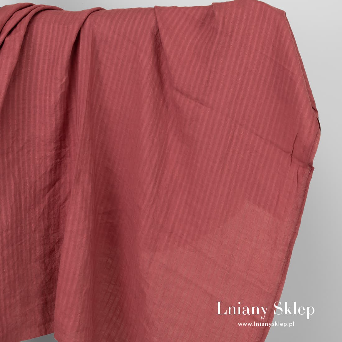 • Czerwonawa prana lniana tkanina w paski ze wzorków.