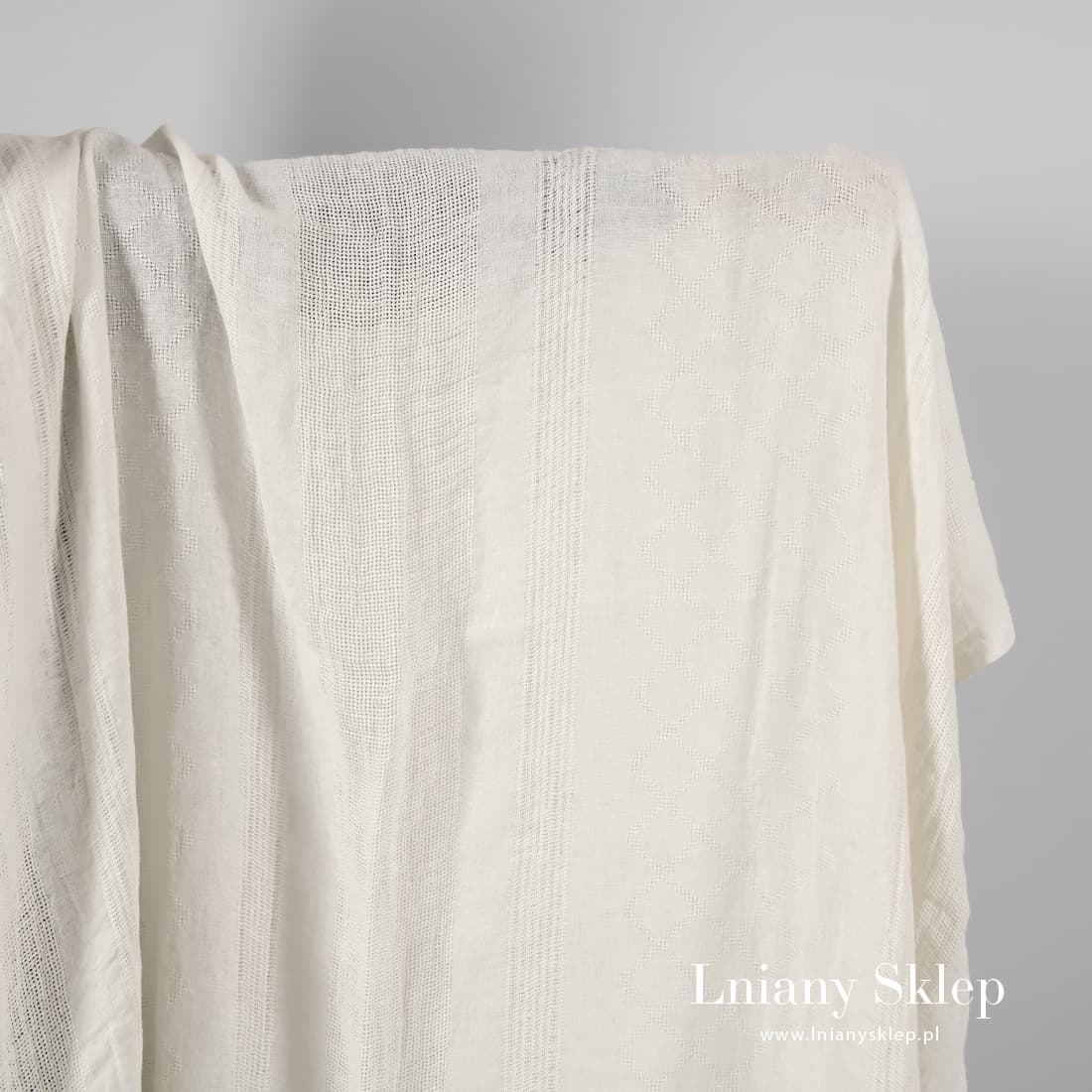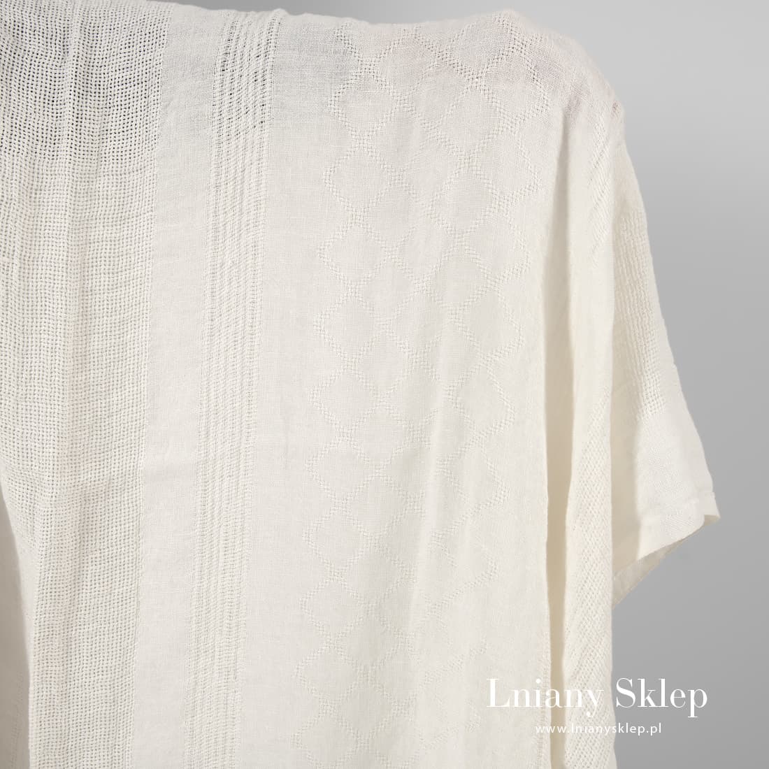 - Wzór: pionowe pasy i romby gęściej i rzadziej (przeźroczyście) wytkane