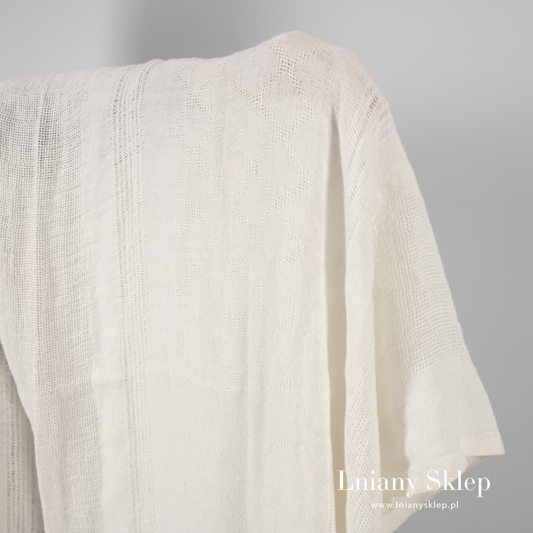 - Kolor: wytkany z mlecznobiałej (białej o żółtawym odcieniu) przędzy