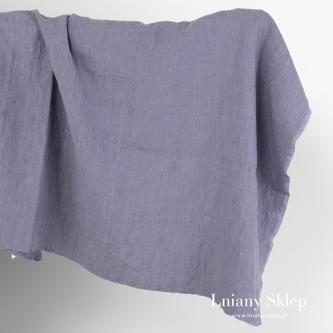 Jasny fioletowy prany len ma leciutki niebieskawy odcień. Gęsty, mocny, średnio ciężki len. Po praniu mięciutki i przytulny.