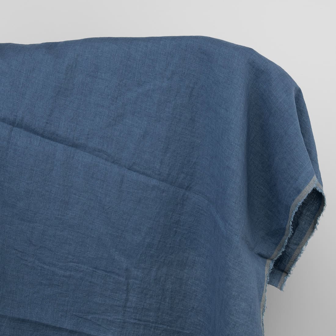 Niebieska o szarym odcieniu, przypominająca dżins tkanina 100% lniana. Mocna, gęsto wytkana i mięciutka po praniu wg specjalnej technologii tkanina lniana. Piękna tkanina, z której uszyjesz wymarzoną kreację.