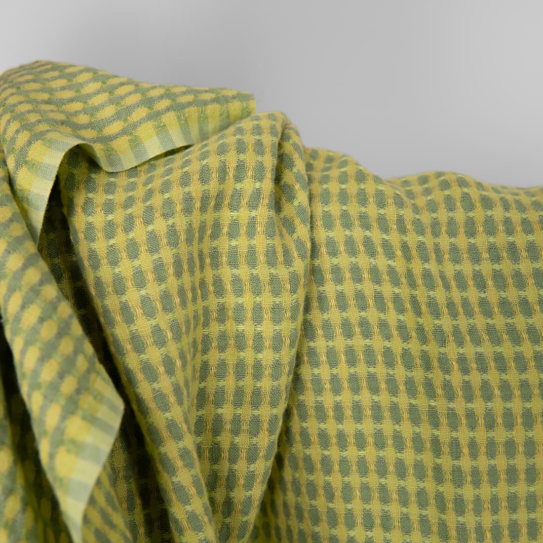 - Kolor: wytkana w melanżu z zielonej, żółtej (banan), zielonej (świeża zieleń) i zielonej (jabłuszko) przędzy