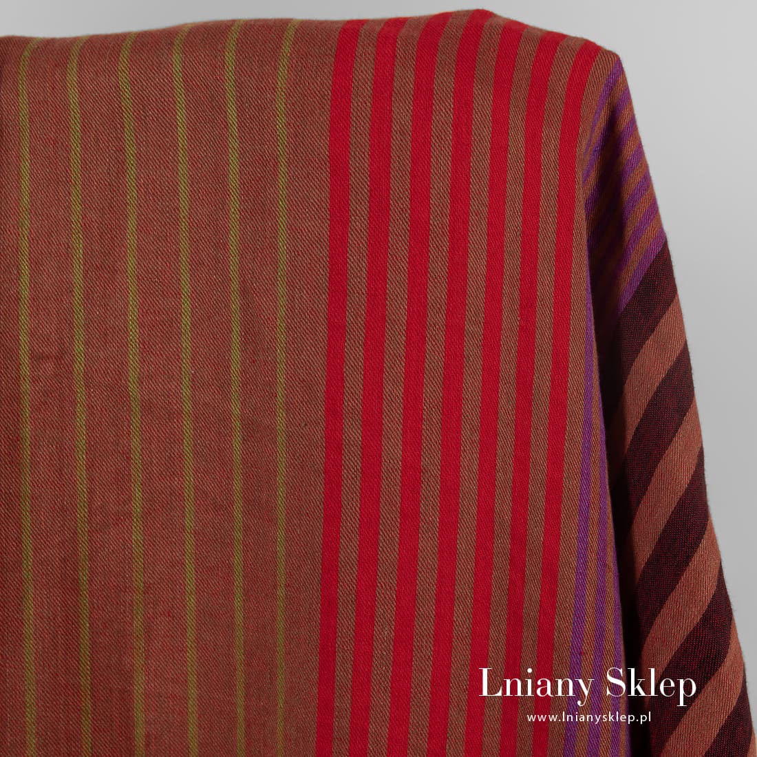 - Wzór: wytkana splotem skośnym w pionowe paski