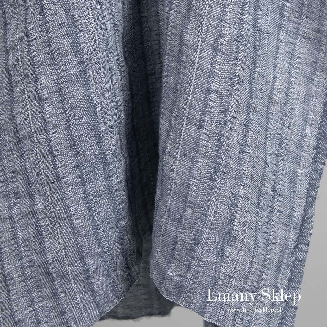 - Kolor: wytkany z szarej o niebieskim odcieniu i białej przędzy