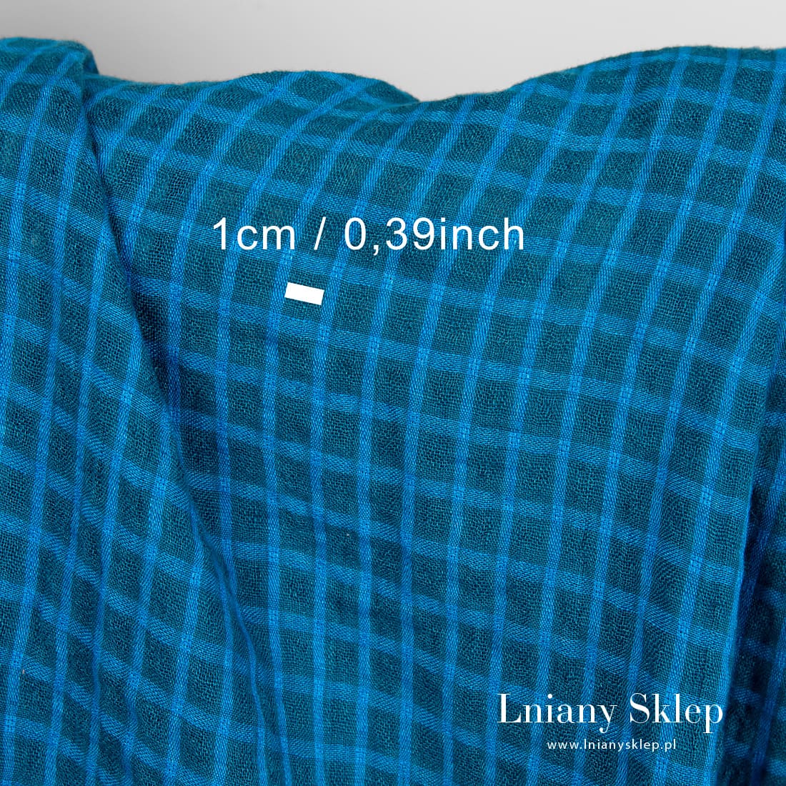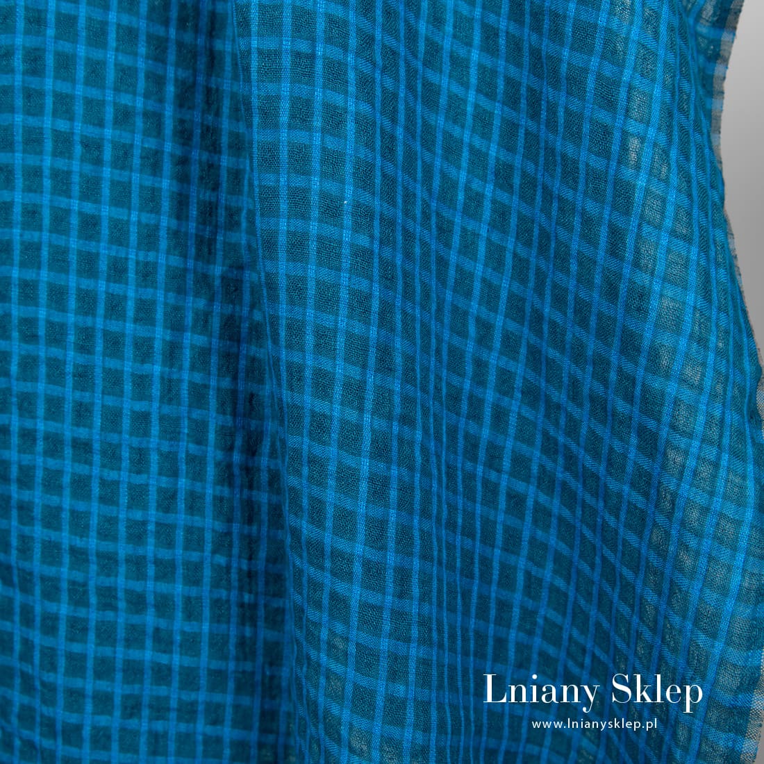 - Kolor: wytkany z jaskrawej niebieskiej i ciemnej turkusowej przędzy
