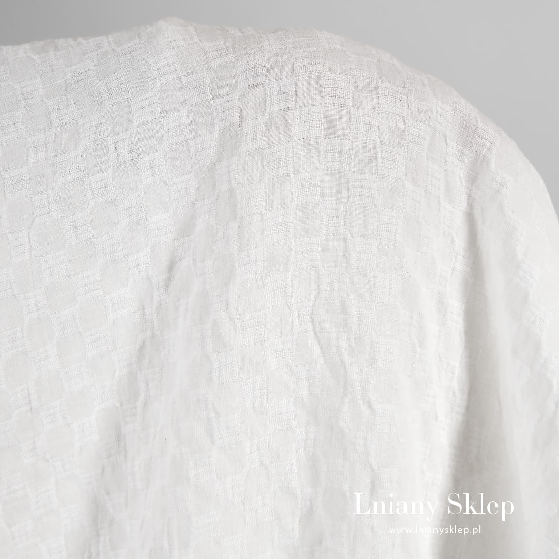 • Prany śnieżnobiały len w drobny wzorek.