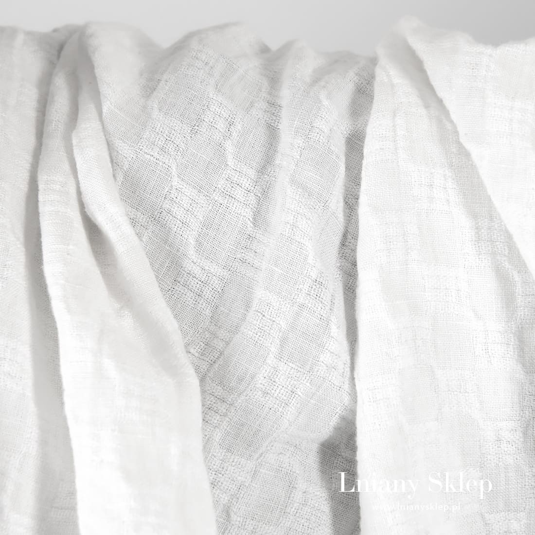 Prany śnieżnobiały len w drobny wzorek