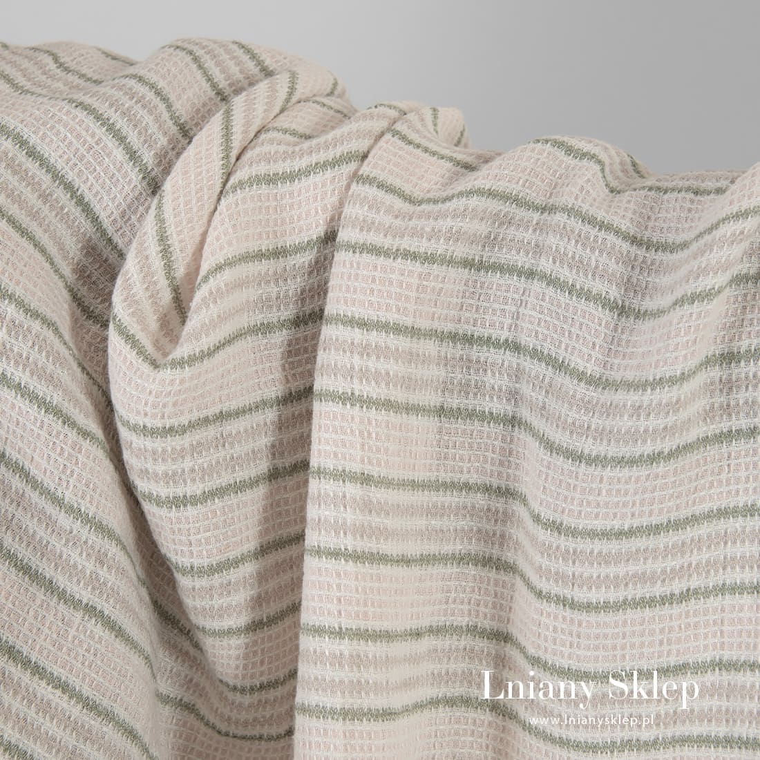 - Kolor: wytkany z mlecznobiałej (lekko żółtej), przytłumionej zielonej, szarej w piasek i jasnoróżowej przędzy