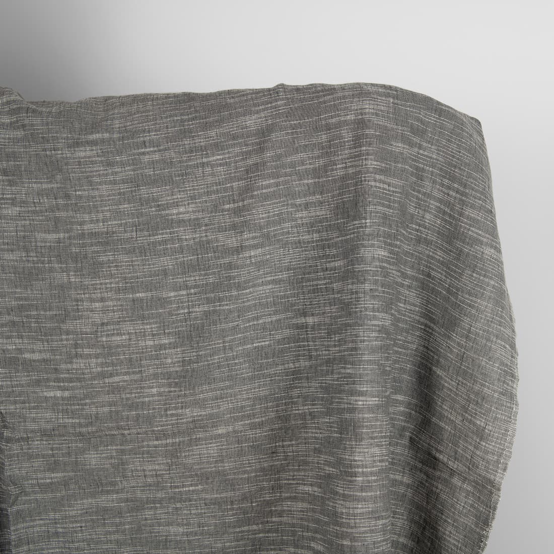 Szara tkanina lniano - bawełniana wytkana z wykorzystaniem białej dekoracyjnej przędzy (przędza ma zgrubienia). Tkanina po wytkaniu uzyskała wzór nieregularnych pasków - rys o różnej długości. Dosyć lekka, gęsta tkanina została w procesie produkcji poddana praniu, dlatego jest miękka i przytulna. Podczas kolejnych prań już nie ulegnie skurczeniu.