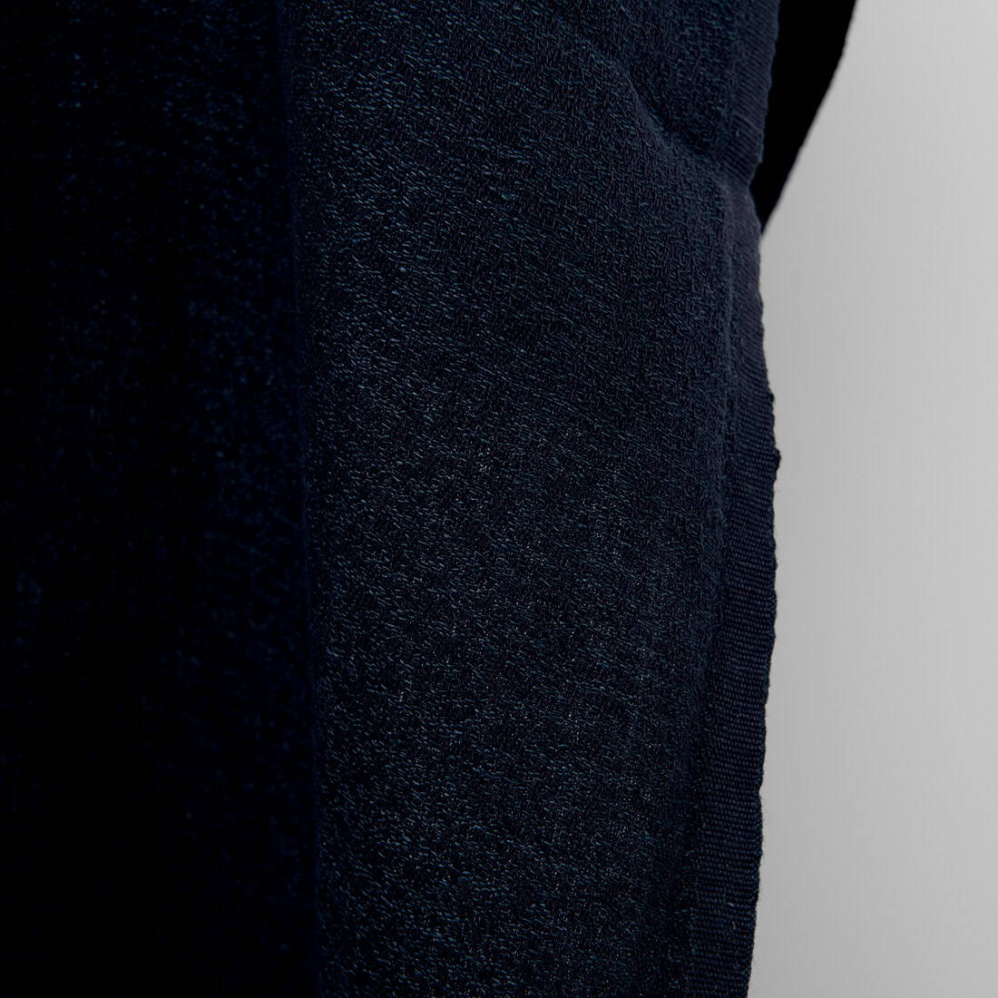 Żakardowa tkanina lniano - bawełniana wytkana z przędzy czarnej i ciemnoniebieskiej. Użyty splot układa się w nieregularny rysunek. Po praniu tkanina uzyskała puszystość, stała się miękka. Po kolejnych praniach tkanina się nie ściągnie.