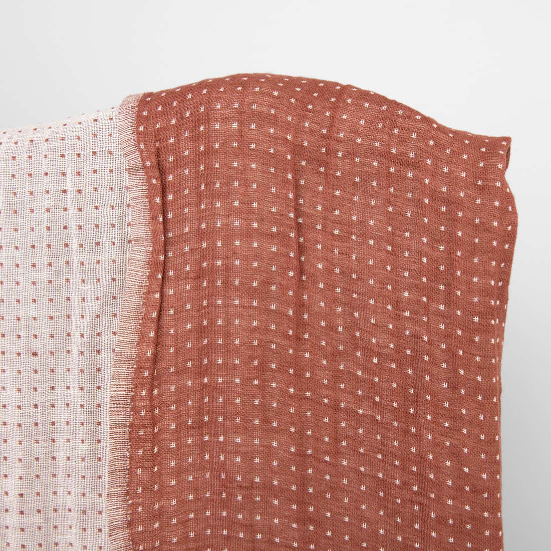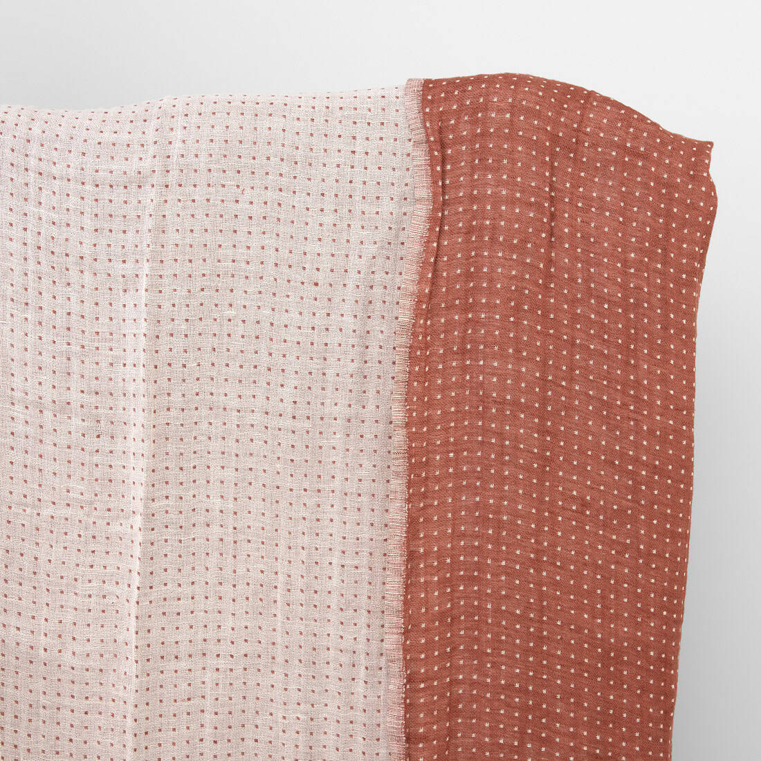 Lniano - bawełniana tkanina wytkana w kropeczki z przędzy o barwach mlecznobiałej i ciemnomalinowej. Tkanina ma piękne obie strony: jedna - malinowa w białe kropeczki, druga - biała w malinowe kropeczki. Tkaninę w procesie produkcji poddano praniu według specjalnej technologii, dlatego jest miękka i nie skurczy się podczas kolejnych prań. Ta średnio gruba, przytulna tkanina świetnie się nada na szycie narzut na łóżka, najróżniejszych ubrań, szalików oraz najróżniejszych akcesoriów.