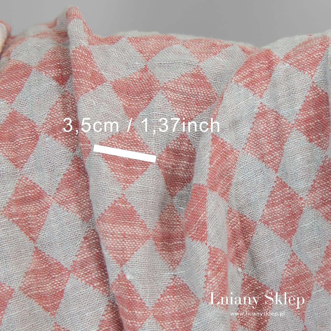 Prana tkanina w czerwone romby len z bawełną wytkana z przędzy szarej o niebieskim odcieniu, czerwonej i mlecznobiałej (lekko żółtawej) z nieregularnymi zgrubieniami. Gruba, po praniu mięciutka, dwuwarstwowa tkanina na szycie pledów, szlików i grubszej odzieży.
