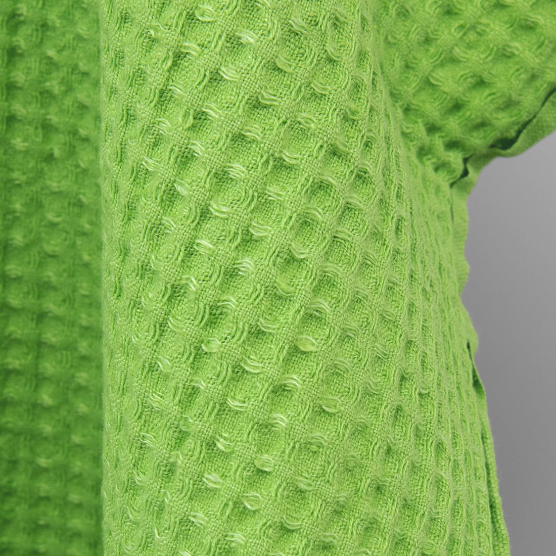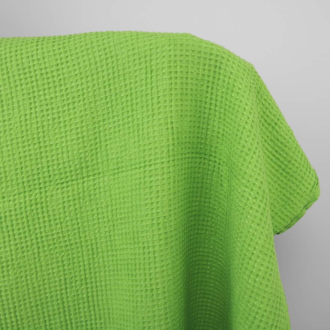 Jasnozielona (sałatowa) tkanina lniano - bawełniana wytkana splotem waflowym (wypukłe okienka). Tkanina została poddana praniu w procesie produkcji, dlatego produkcji stała się miękka, przytulna i puszysta. Tkanina przeznaczona na szycie szlafroków i ręczników.