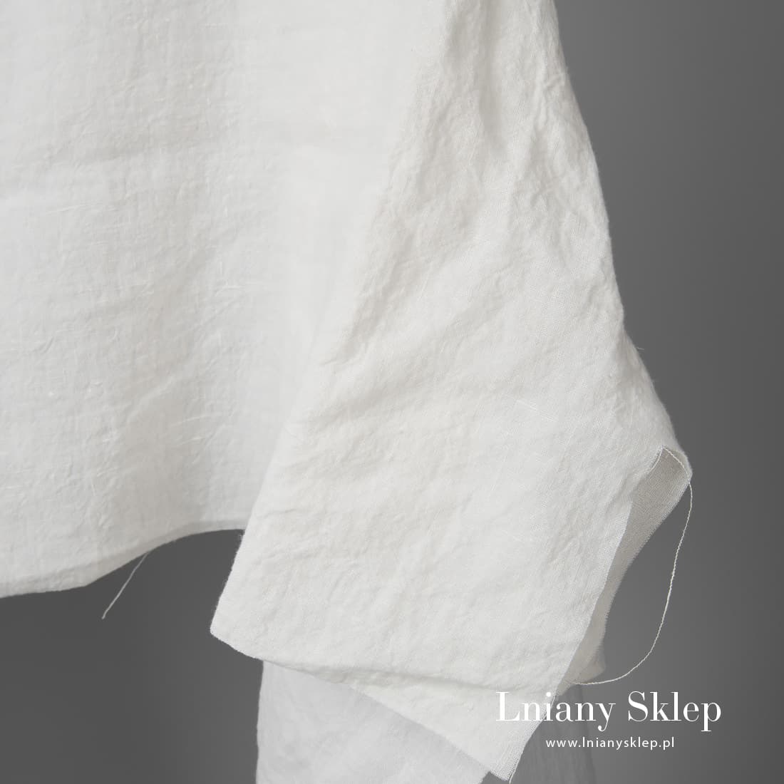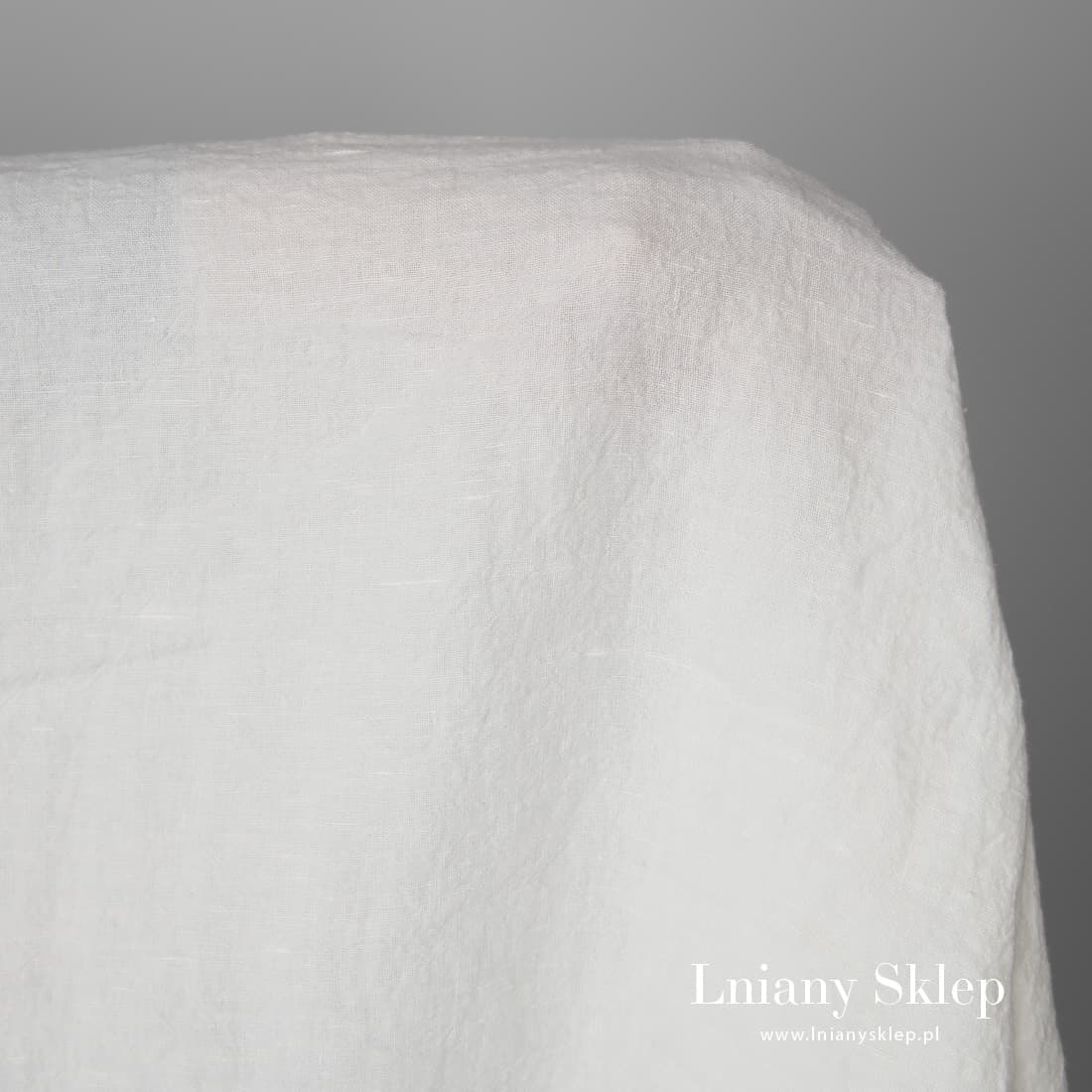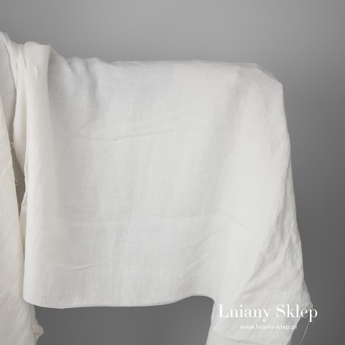 Szeroka (ok. 285cm), biała o wyraźnym żółtawym odcieniu tkanina lniana. Szukasz idealną tkaninę na naturalną pościel, która będzie długo służyć? Wypróbuj tę tkaninę – jest szeroka, miękka po praniu, a po kolejnych praniach się nie ściągnie.