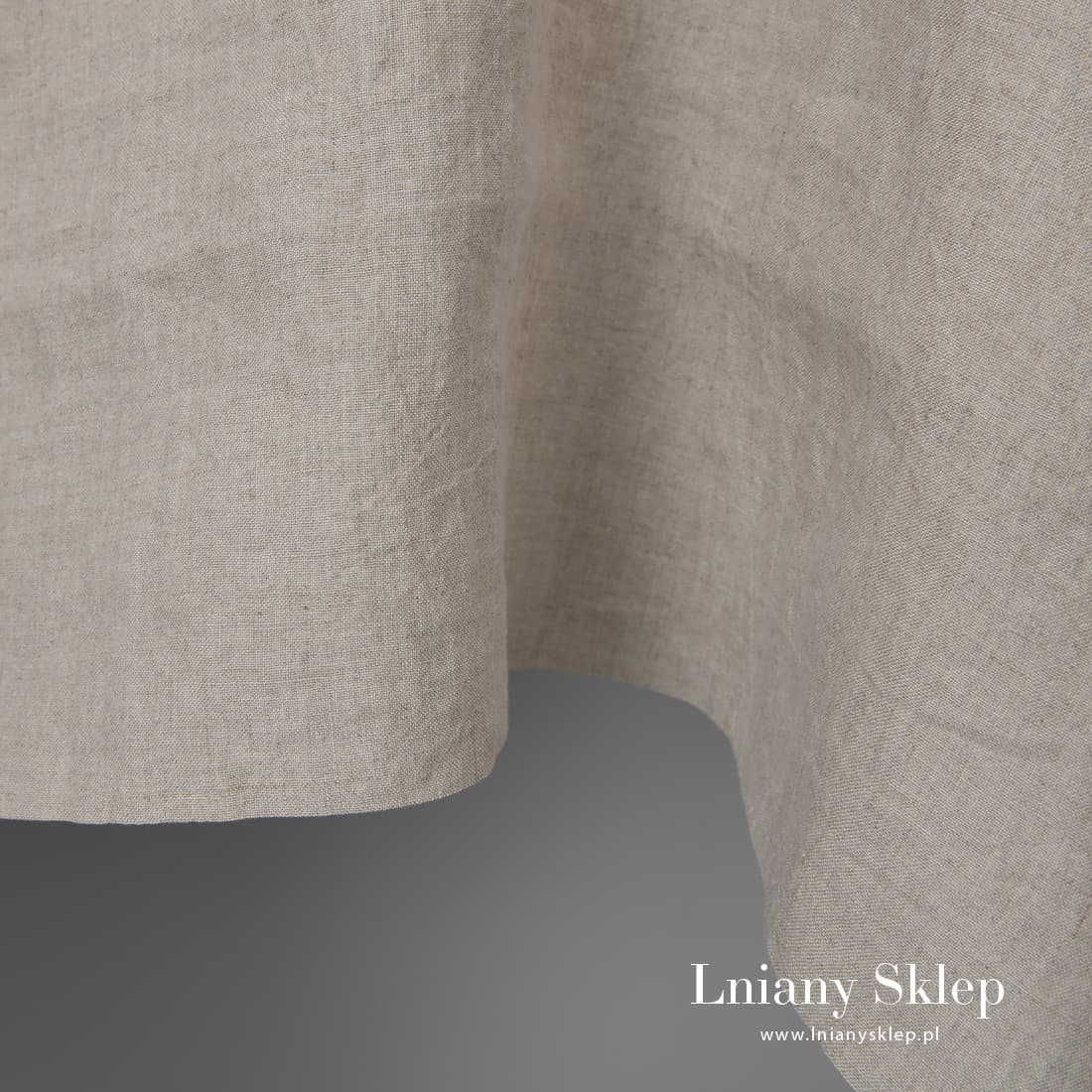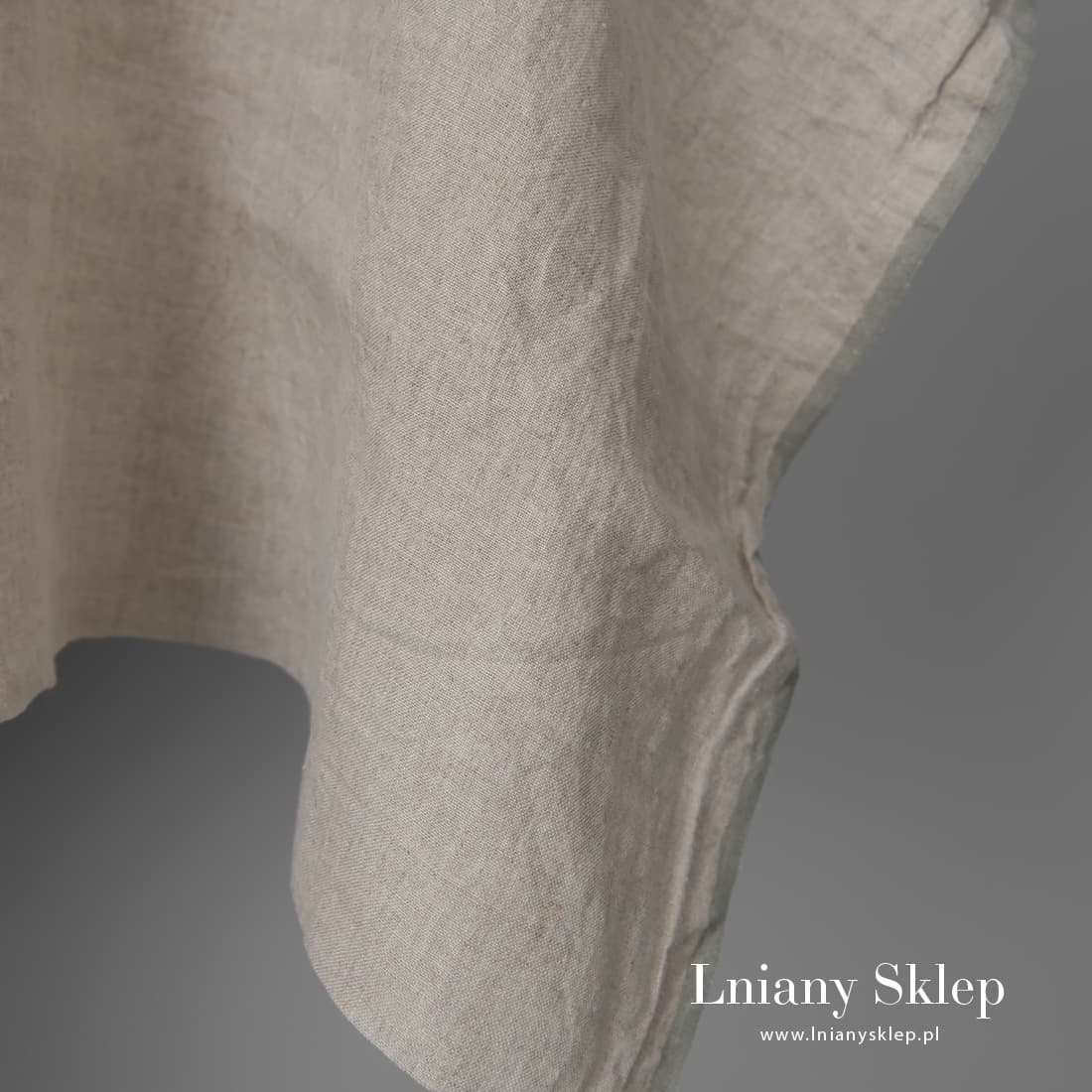 Szara tkanina została wytkana z niebarwionej przędzy lnianej. Dość lekka, mocna, gęsto wytkana, miękka po praniu w procesie produkcji. Jest to szeroka tkanina - około 295cm. Pozwoli uszyć szerokie poszwy na okrycie bez zbędnych, widocznych szwów.