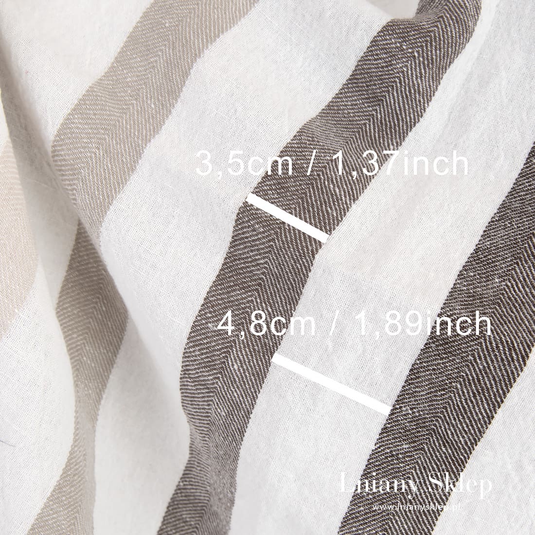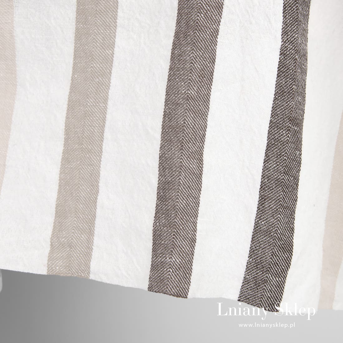 - Kolor: tkanina z mlecznobiałej (lekko żółtawej), piaskowej, szarej o piaskowym odcieniu i ciemnobrązowej przędzy