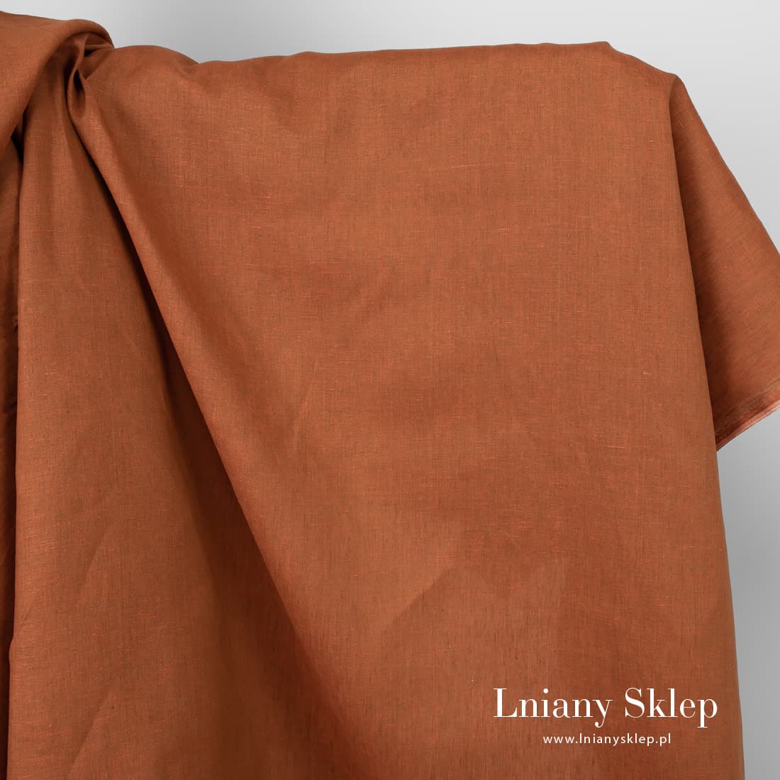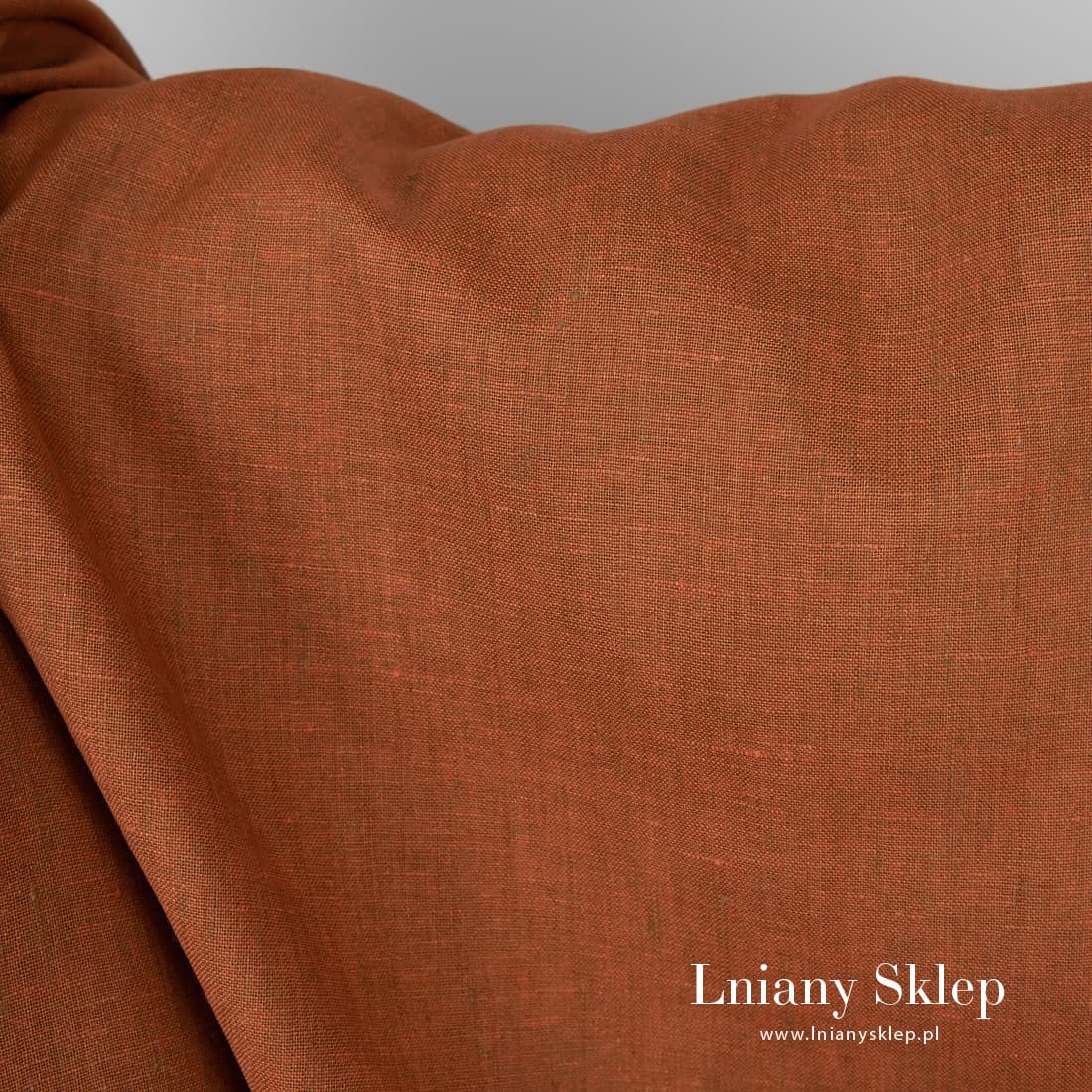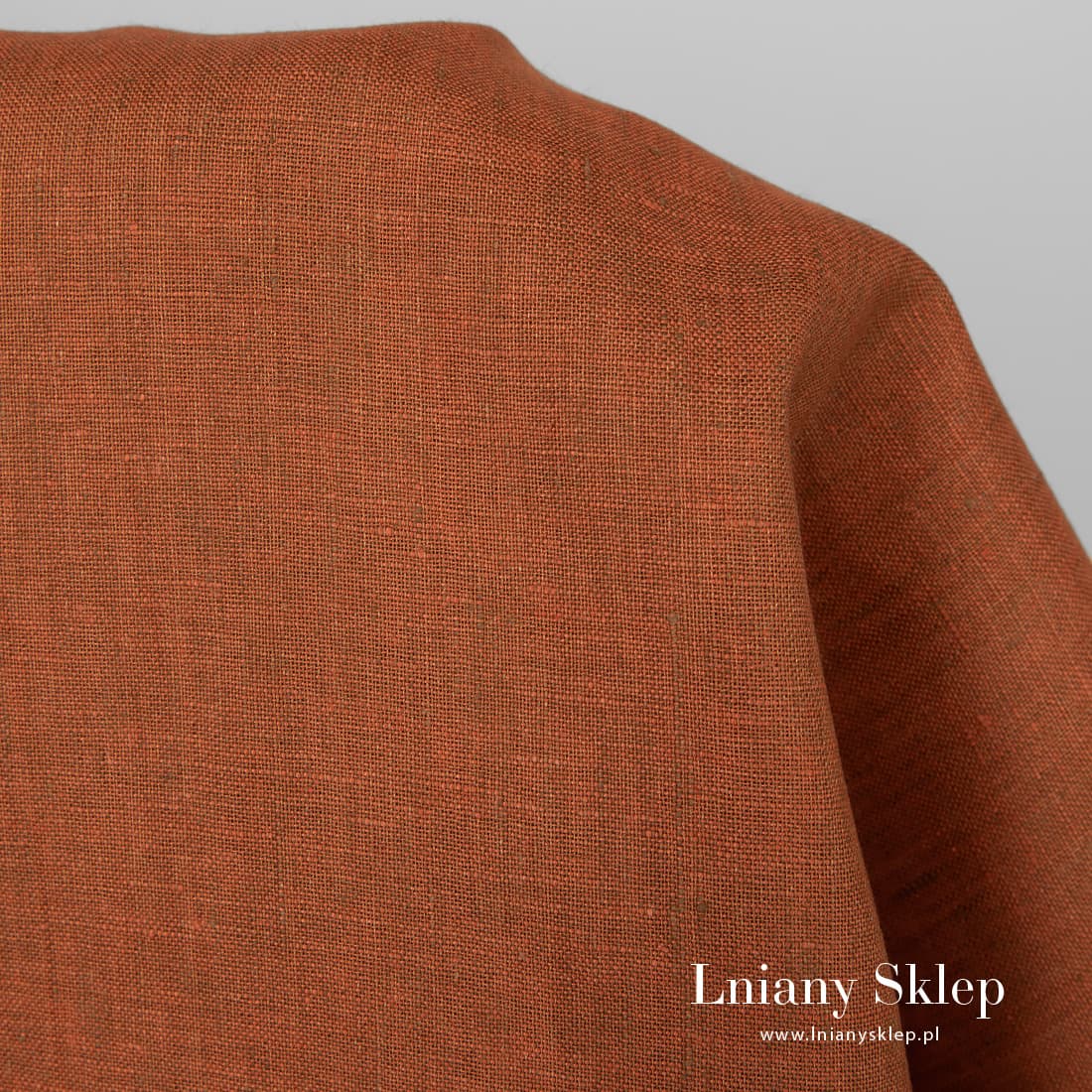 • Tkanina lniana melanż pomarańczowej i brązowej przędzy.