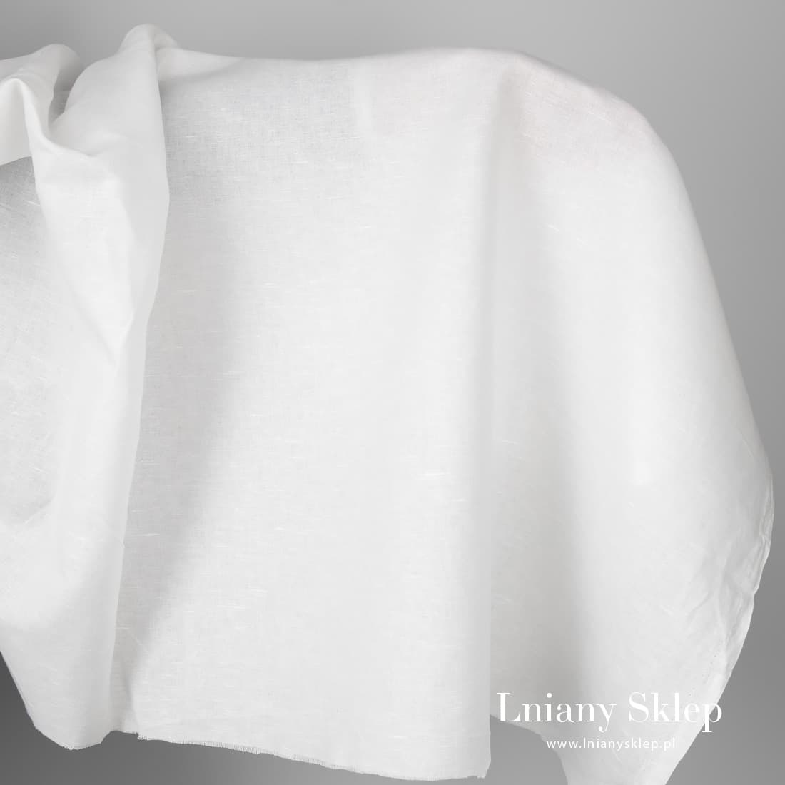Mlecznobiała szeroka tkanina lniano - bawełniana wpada w lekko żółty odcień. Gęsta, wytrzymała, jakościowa tkanina do wykorzystania na szycie najróżniejszych produktów: pościeli, zasłon oraz produktów konfekcji odzieżowej, kuchennej i stołowej.