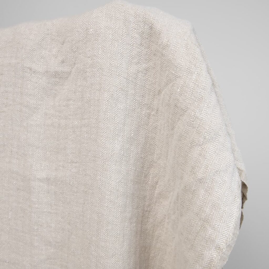 Uwaga: Do wytkania tkaniny użyto naturalnej, niebarwionej przędzy, dlatego odcień rzeczywisty tkaniny może nieco się różnić od koloru tkaniny na fotografii. Przy powtórnym zamówieniu, odcień tej samej tkaniny może się nieco różnić od poprzednio zamówionej.
