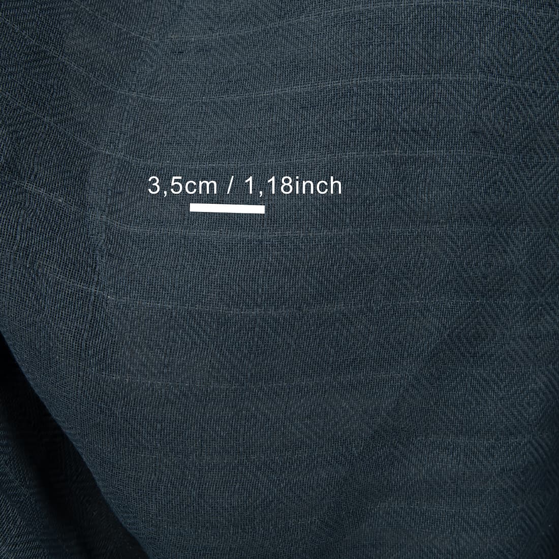 • Tkanina wytkana w romby z przędzy granatowej i zielonej w szarość.