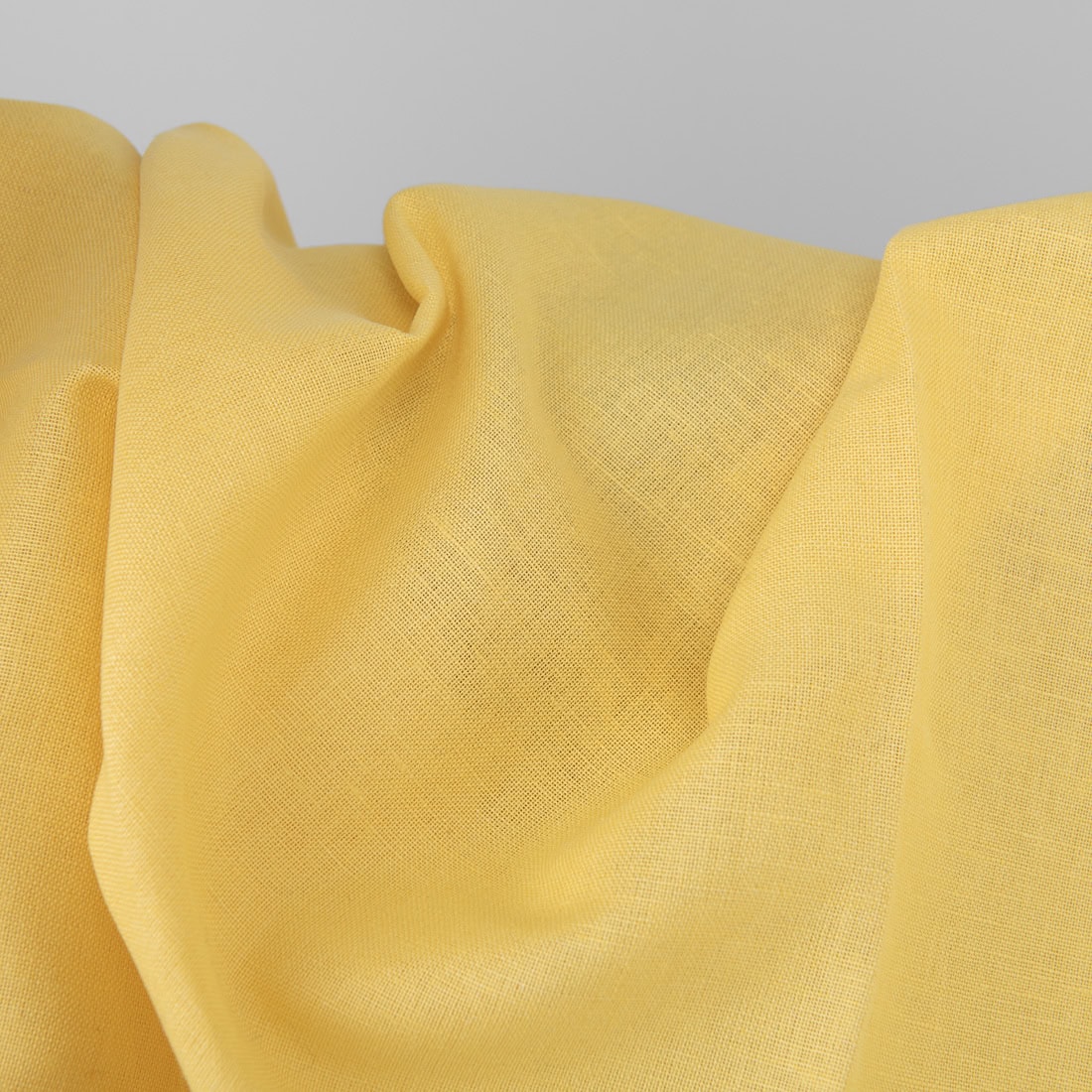 Jaskrawa żółta tkanina lniano-bawełniana wytkana splotem płóciennym. Lekka, mocna i gęsta tkanina na szycie różnorodnych produktów.