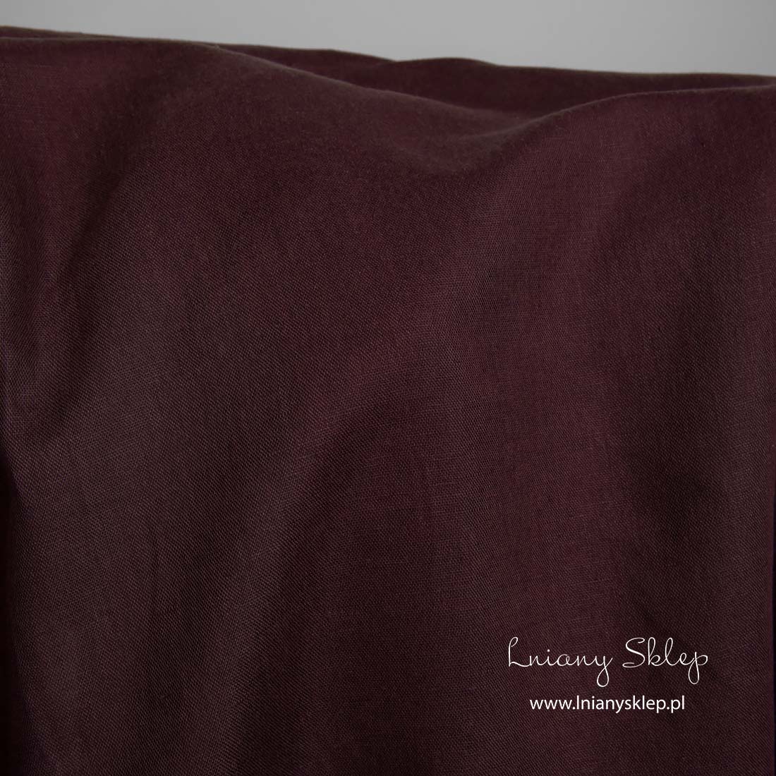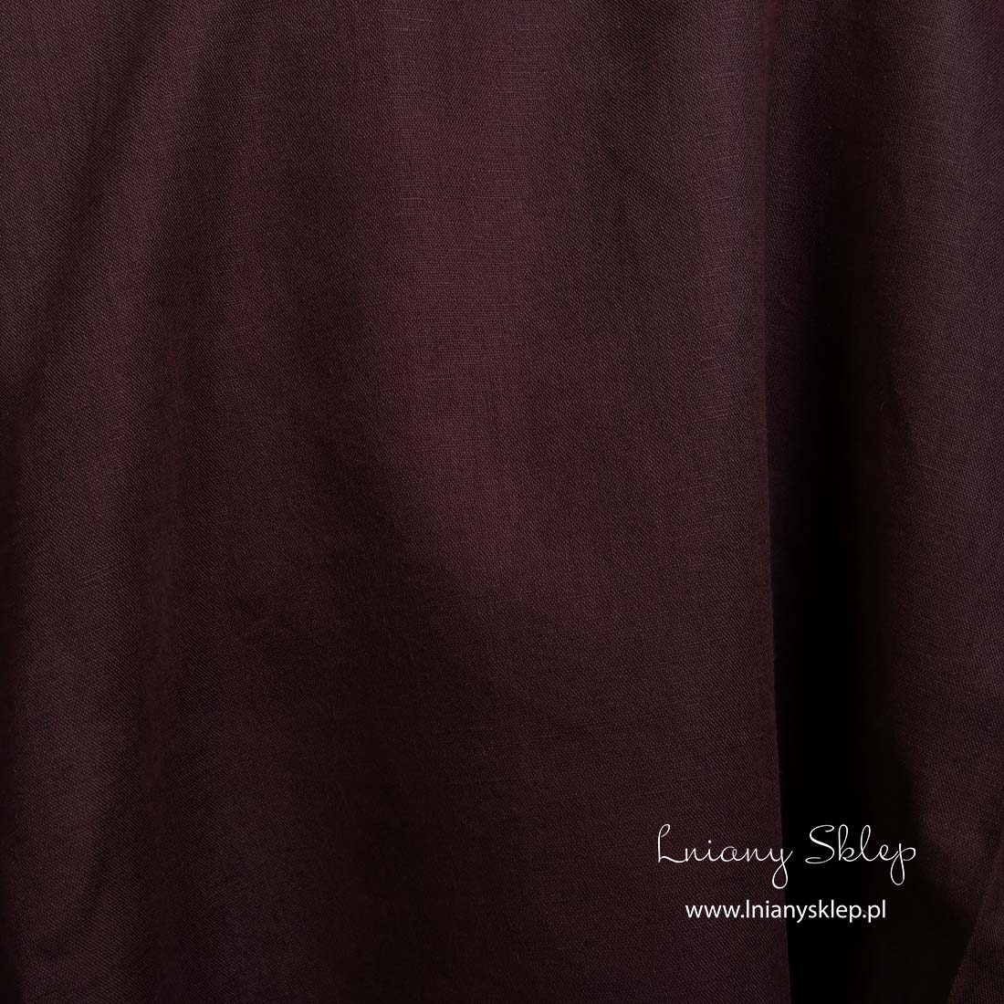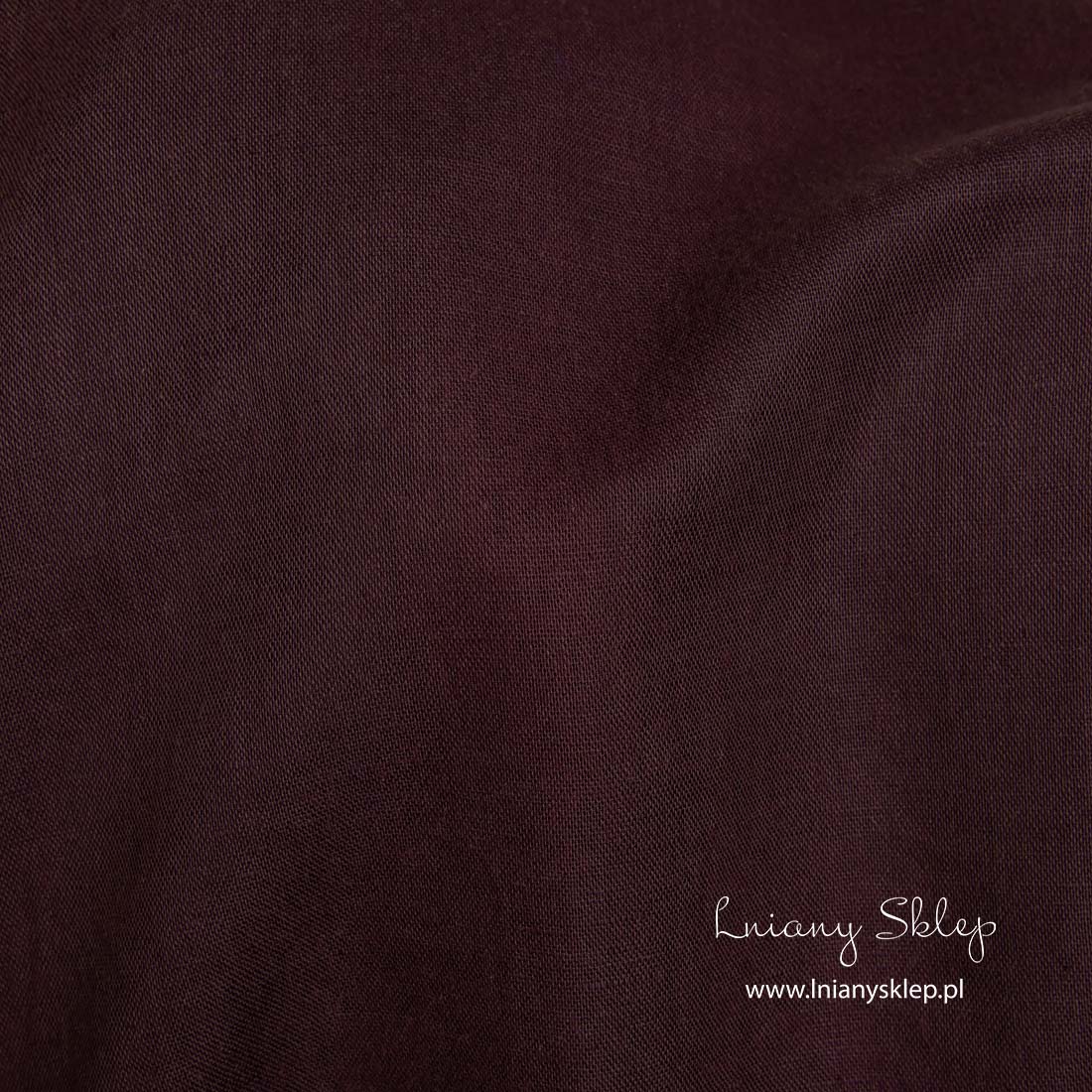 Lniano - bawełniana tkanina czerwona ciemna jest gęstą, średnio grubą, mocną i wytrzymałą tkaniną. Kolor tkaniny przypomina bardzo dojrzałą, ciemną wiśnię.