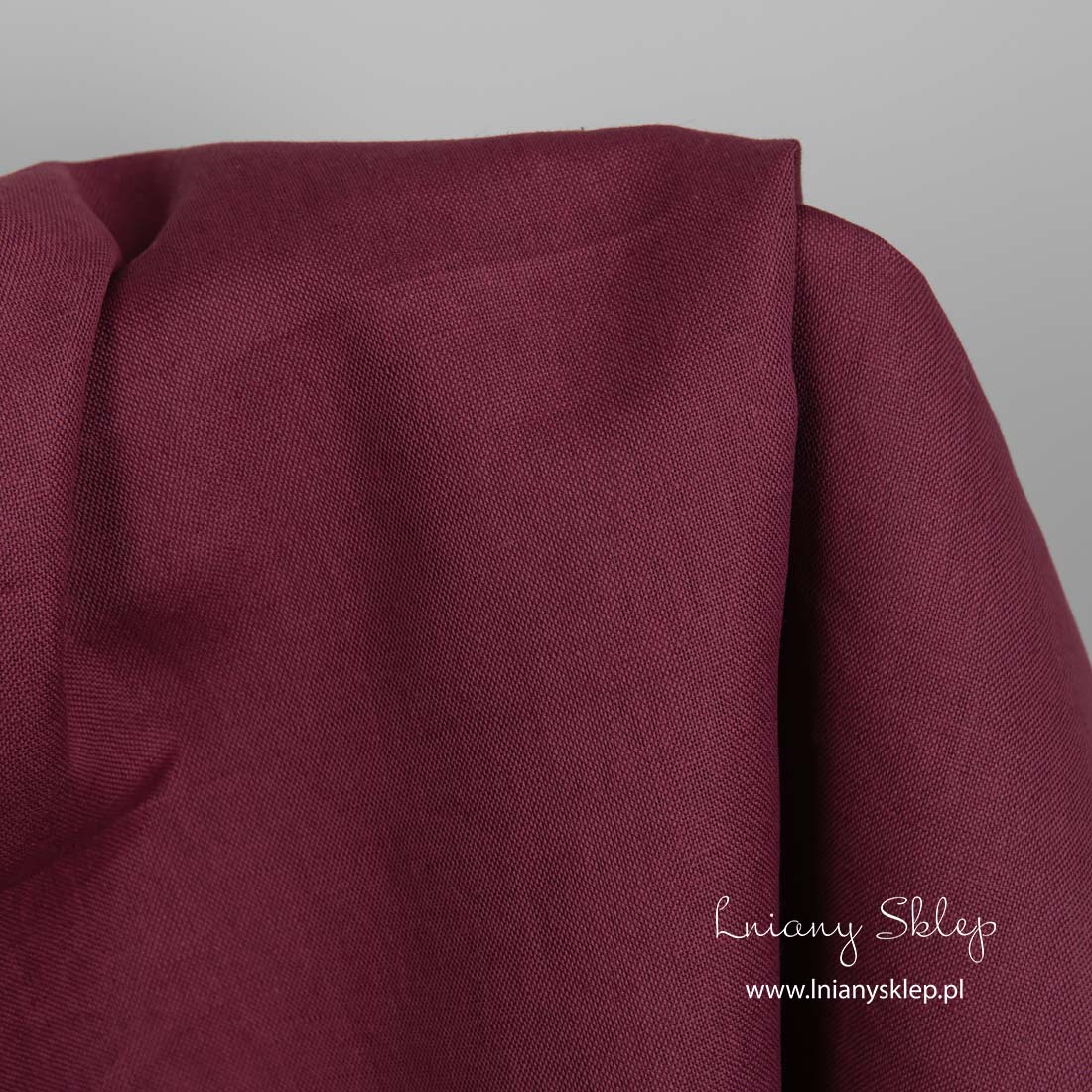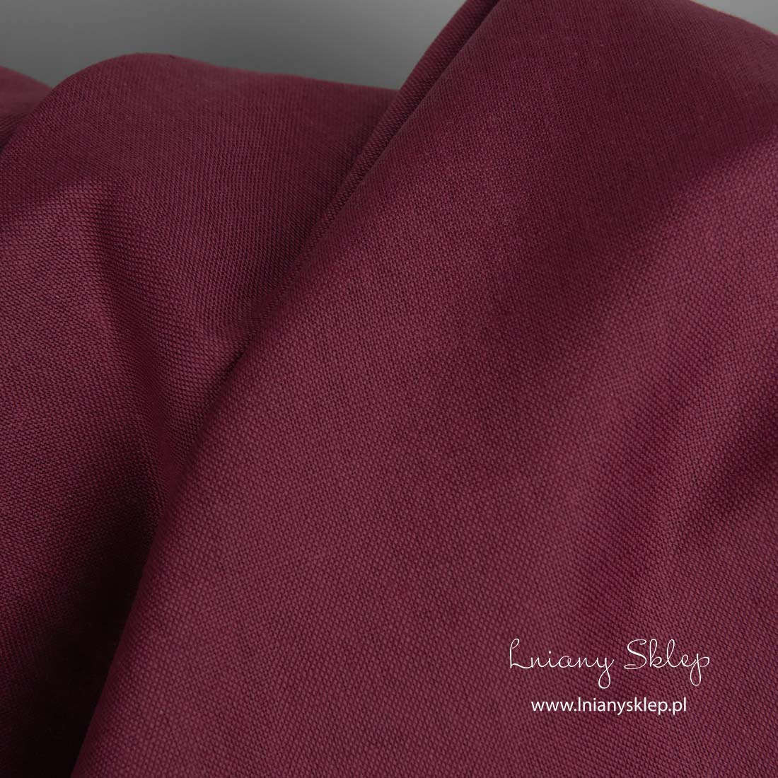 Lniano - bawełniana tkanina wiśniowa (ciemna czerwona). Mocna i wytrzymała tkanina lniana. Średnio gruba.