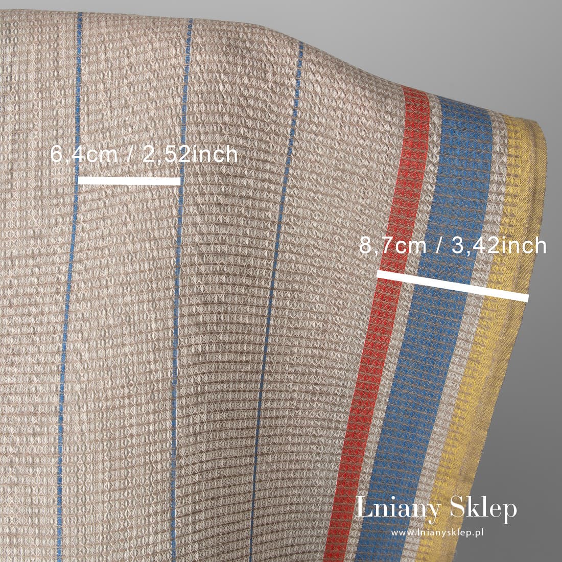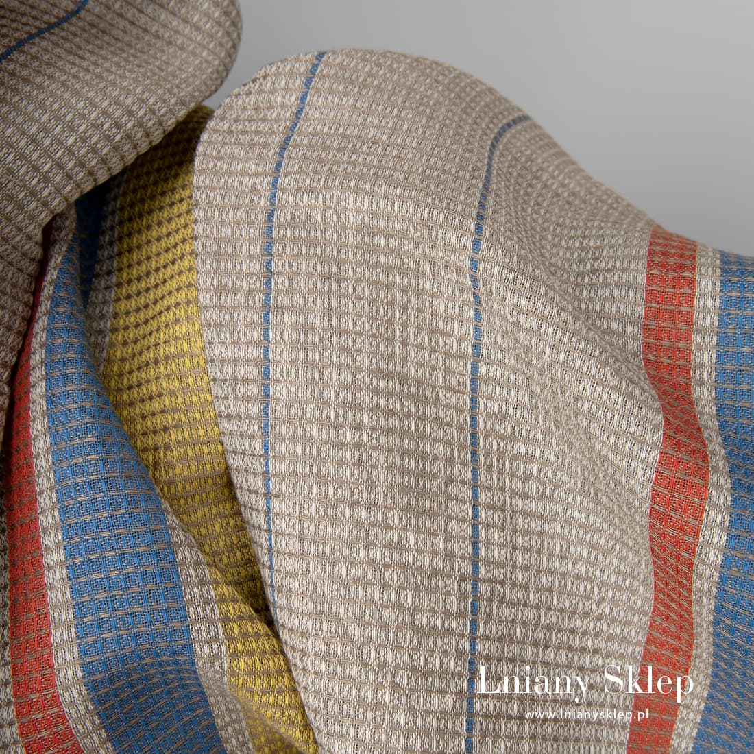 - Kolor: wytkany z ciemnej piaskowej, białej, żółtej, granatowej i czerwonej przędzy