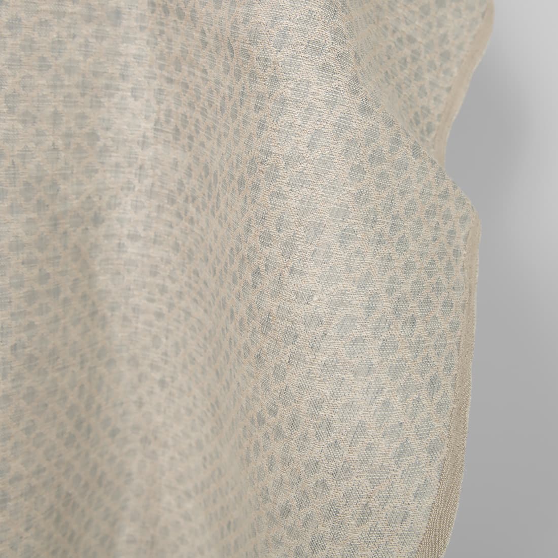 • Piaskowy w szare romby len z bawełną