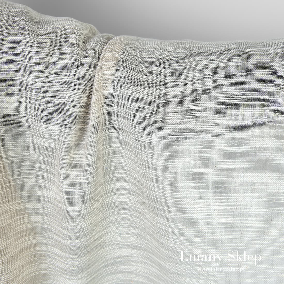 - Kolor: tkanina z niebarwionej (szarej o piaskowym odcieniu) lnianej i bawełnianej białej (o nieregularnych zgrubieniach) przędzy