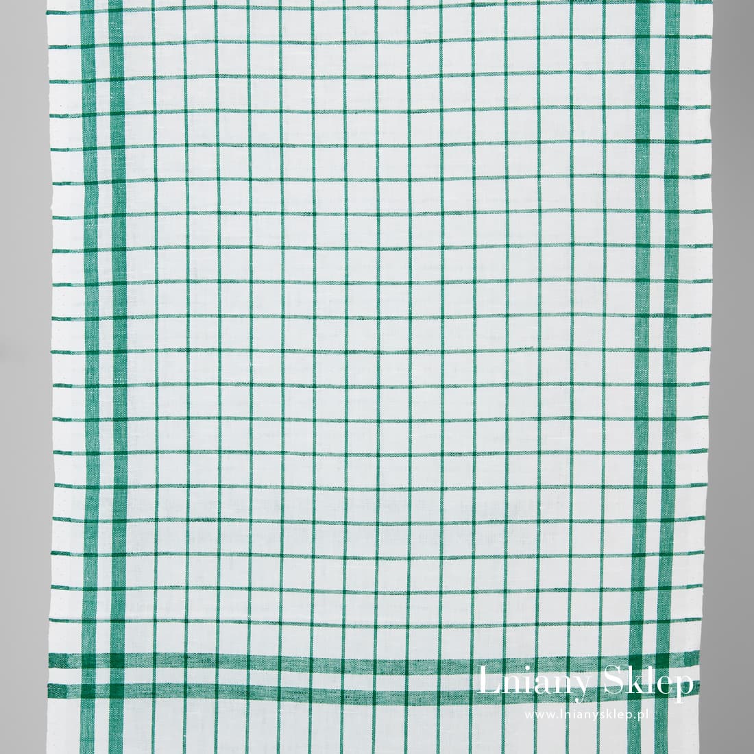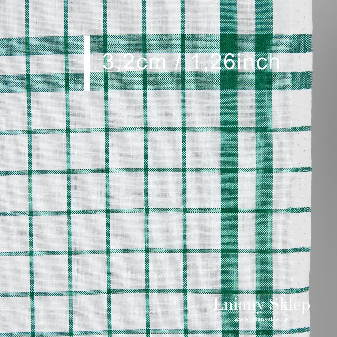 • Ścierkowy biały w zieloną kratkę len z bawełną.