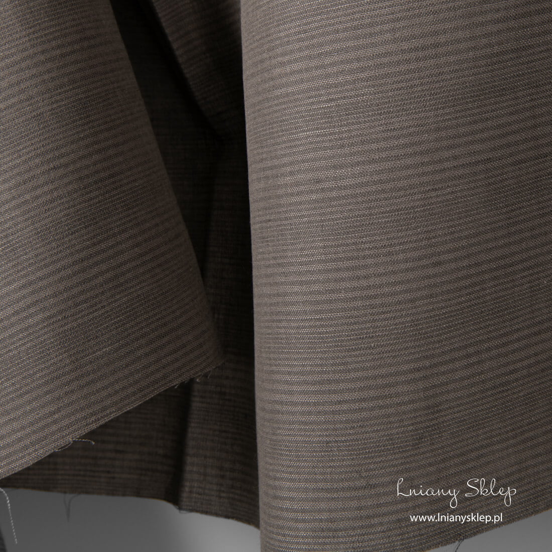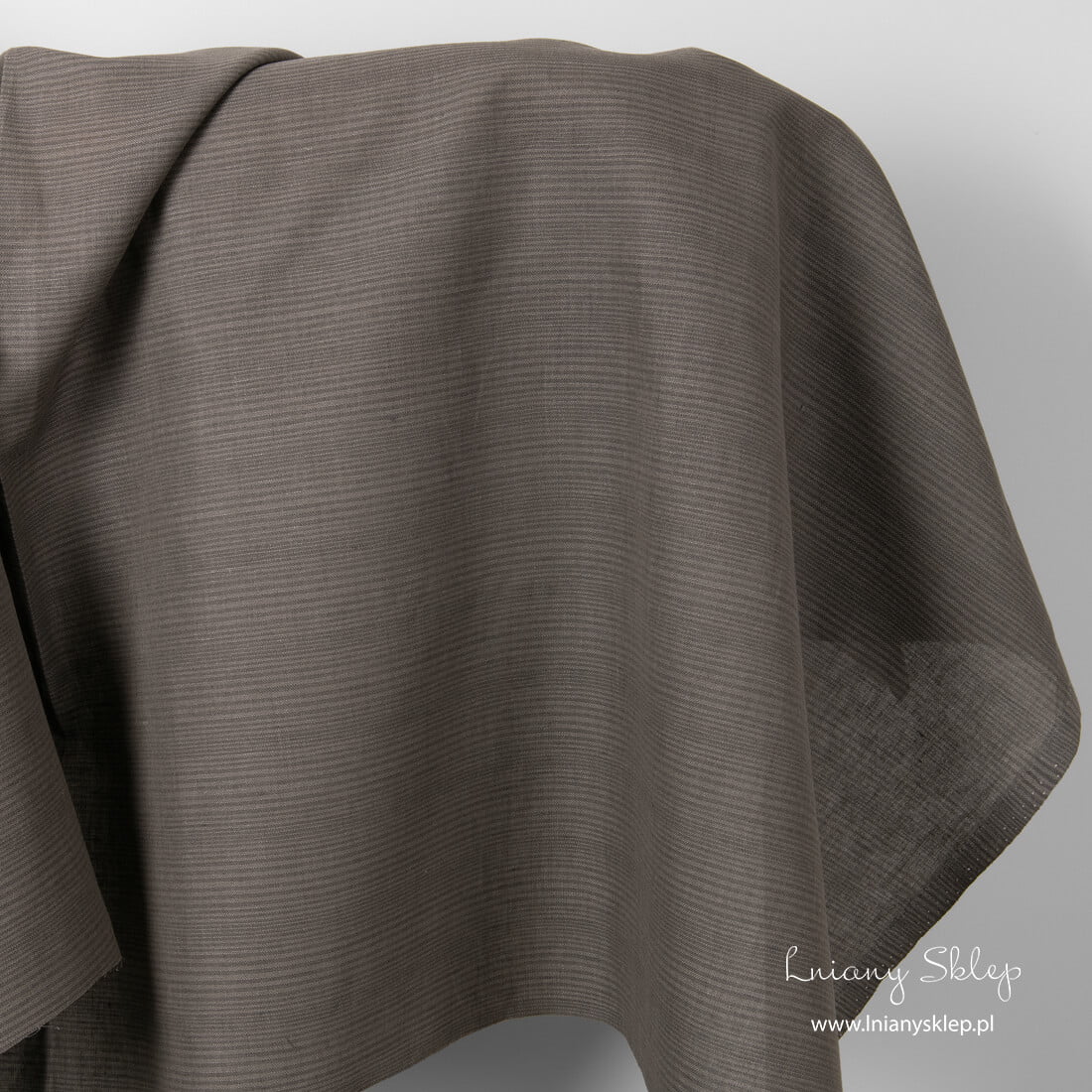 Szary w paski len z domieszką bawełny. Paski na lekko piaskowym tle wytkane są poziomo. Tkanina mocna, gęsta, średnio ciężka.