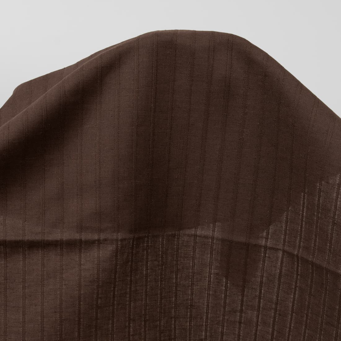 Cienka, lekka tkanina o barwie dość ciemnego brązu. Użyty splot układa się w rysunek wypukłych pionowych pasków.