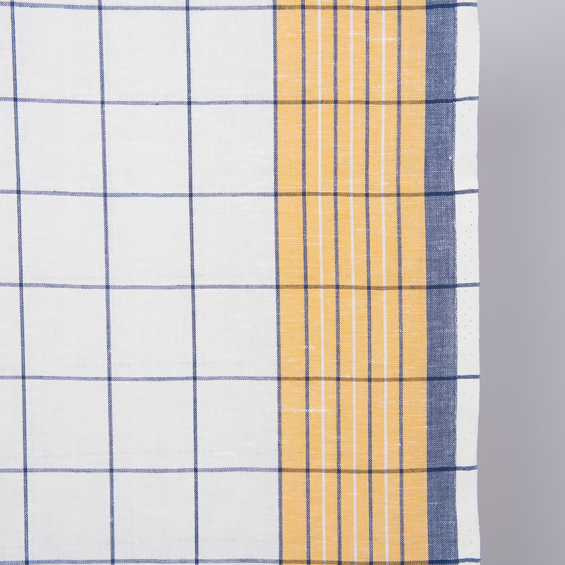 • Tkanina ścierkowa w kratkę żółtą i granatową.