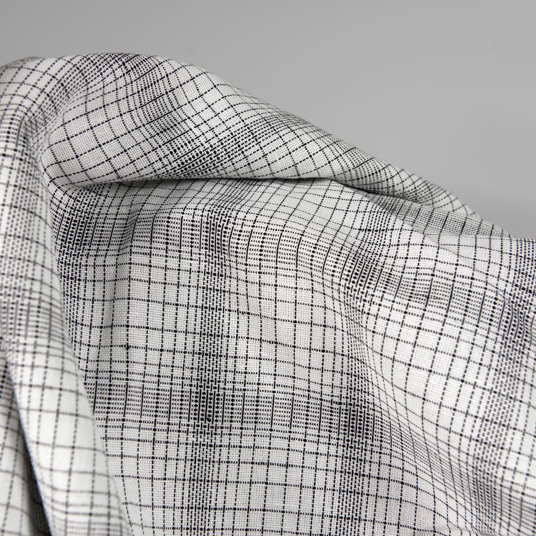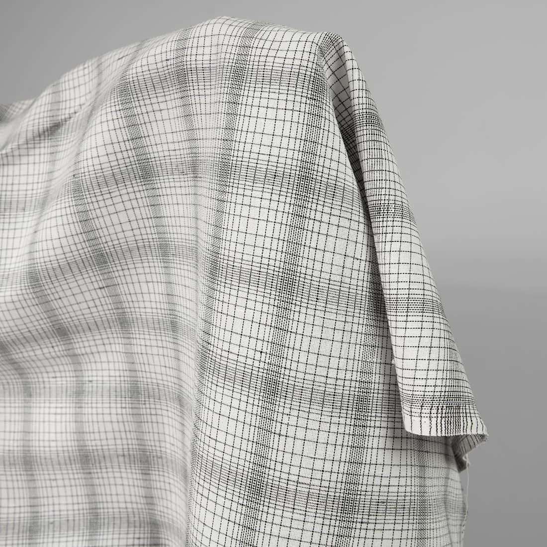 • Tkanina w białą i czarną kratkę len z bawełną
