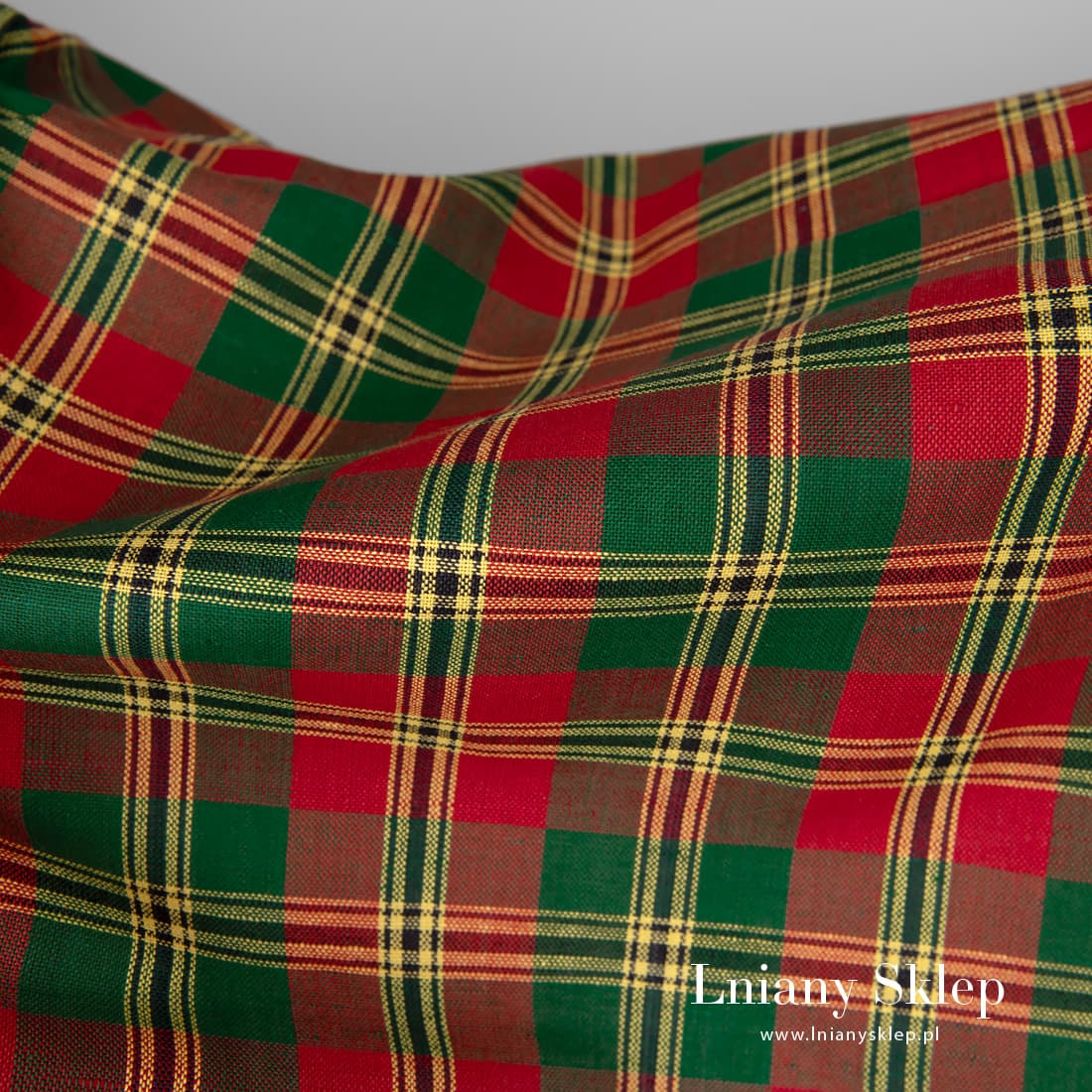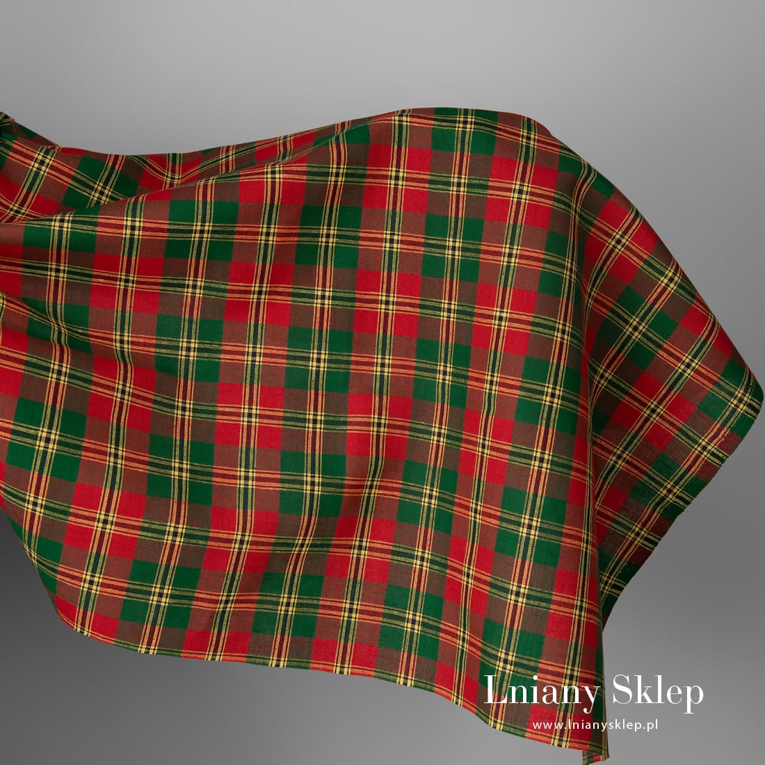 Lniano – bawełniana tkanina wytkana w zielono - czerwoną kratkę i żółte przecinające się paski. W miejscu przecięcia się żółtych pasków – czarne kwadraciki. Mocna i gęsta tkanina jest przeznaczona na szycie najróżniejszych produktów: ubrań, pościeli, zasłon, obrusów itd.