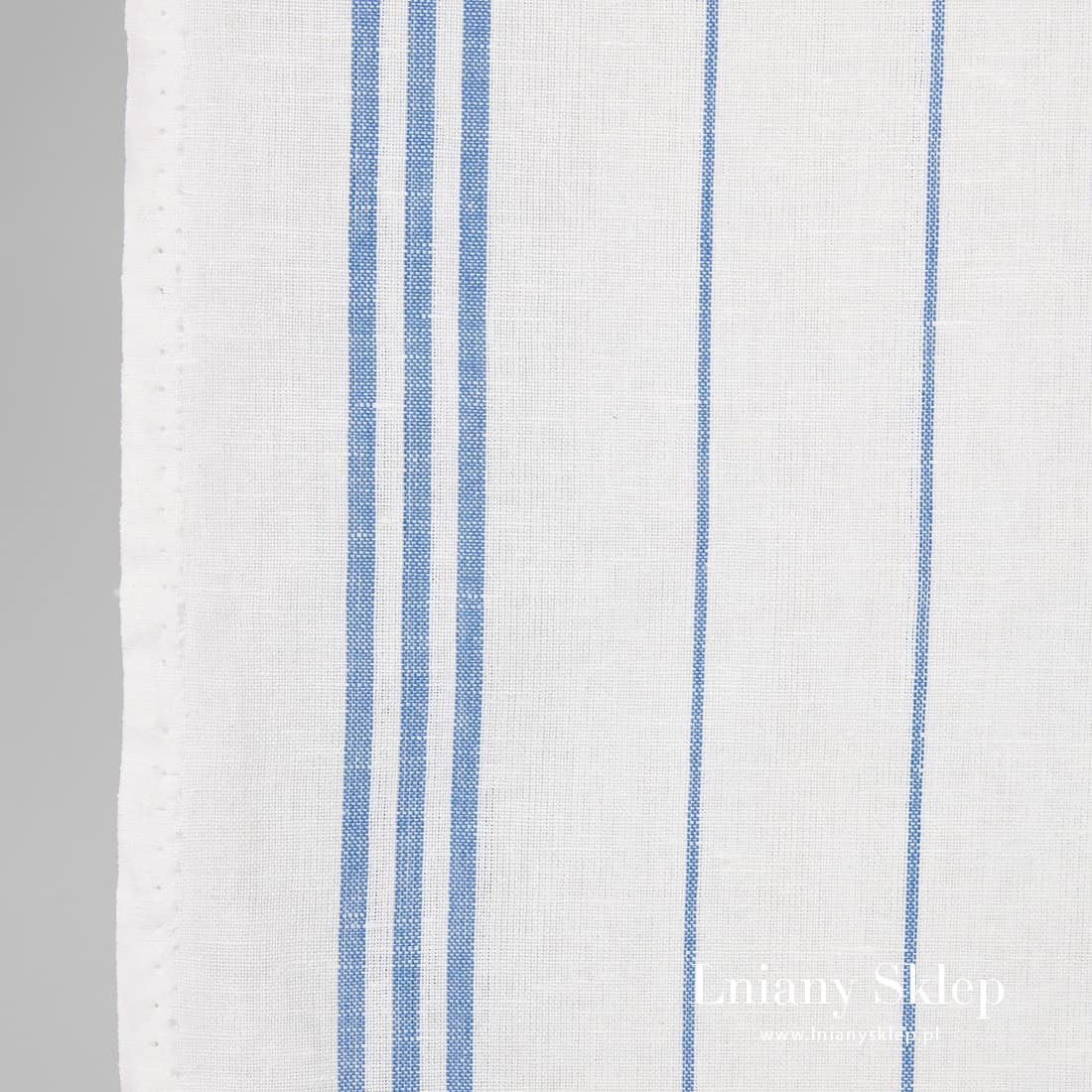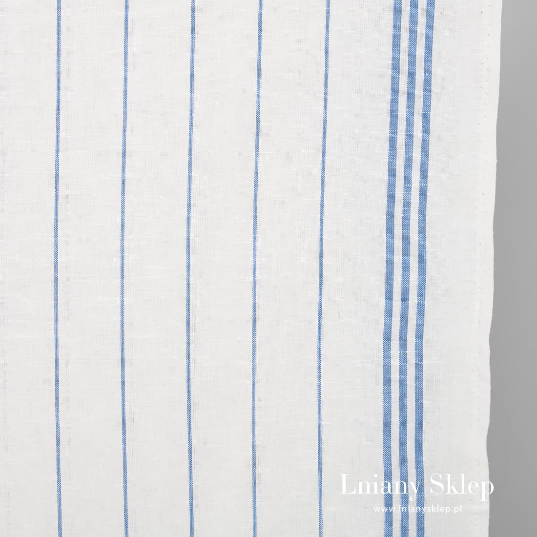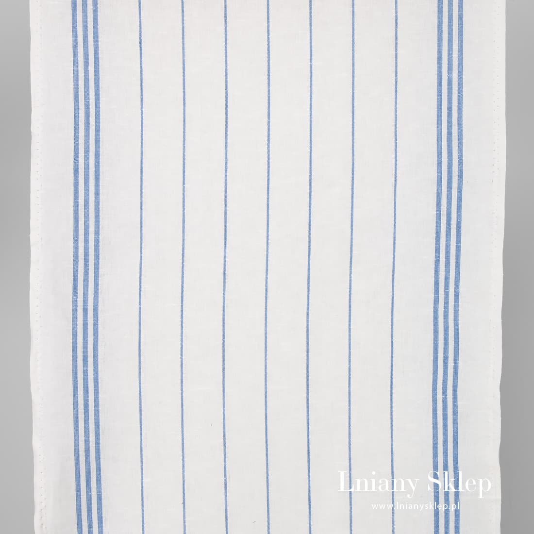 • Wąska biała ścierkowa tkanina w niebieskie paski.
